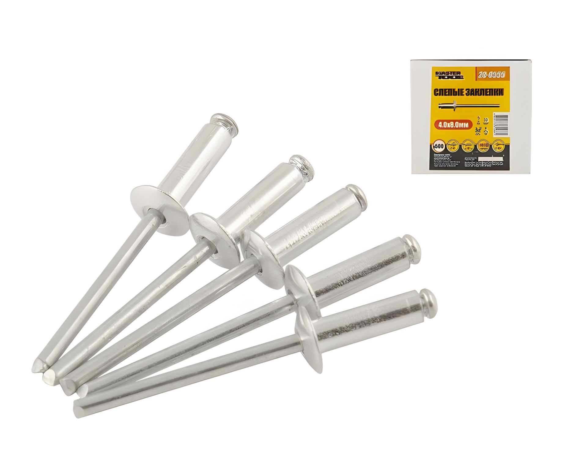 Алюминиевые вытяжные заклепки 4.0х8.00 мм 500 шт MASTERTOOL 20-0555