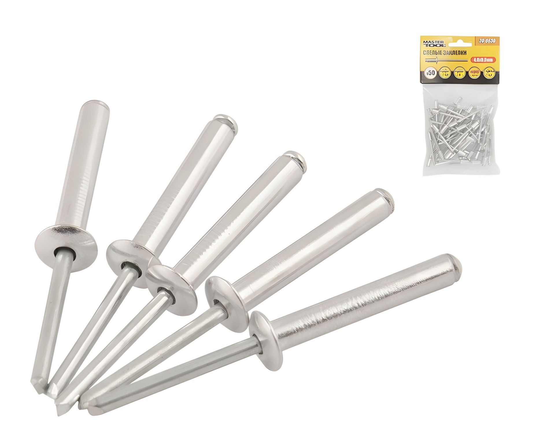 Алюминиевые вытяжные заклепки 4.8х8.00 мм, 50 шт от MASTERTOOL (20-0630)