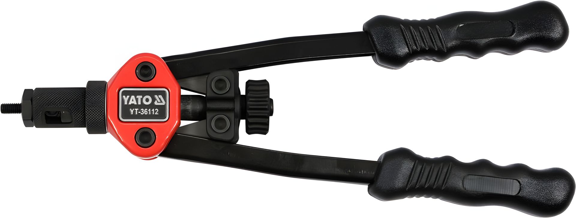 Заклепочник YATO резьбовой двуручный предназначен для прочного соединения несколько деталей при помощи резьбовых металлических заклепок М3, М4, М5, М6, М8. Прочная стальная конструкция дополнена удобными резиновыми рукоятками.
