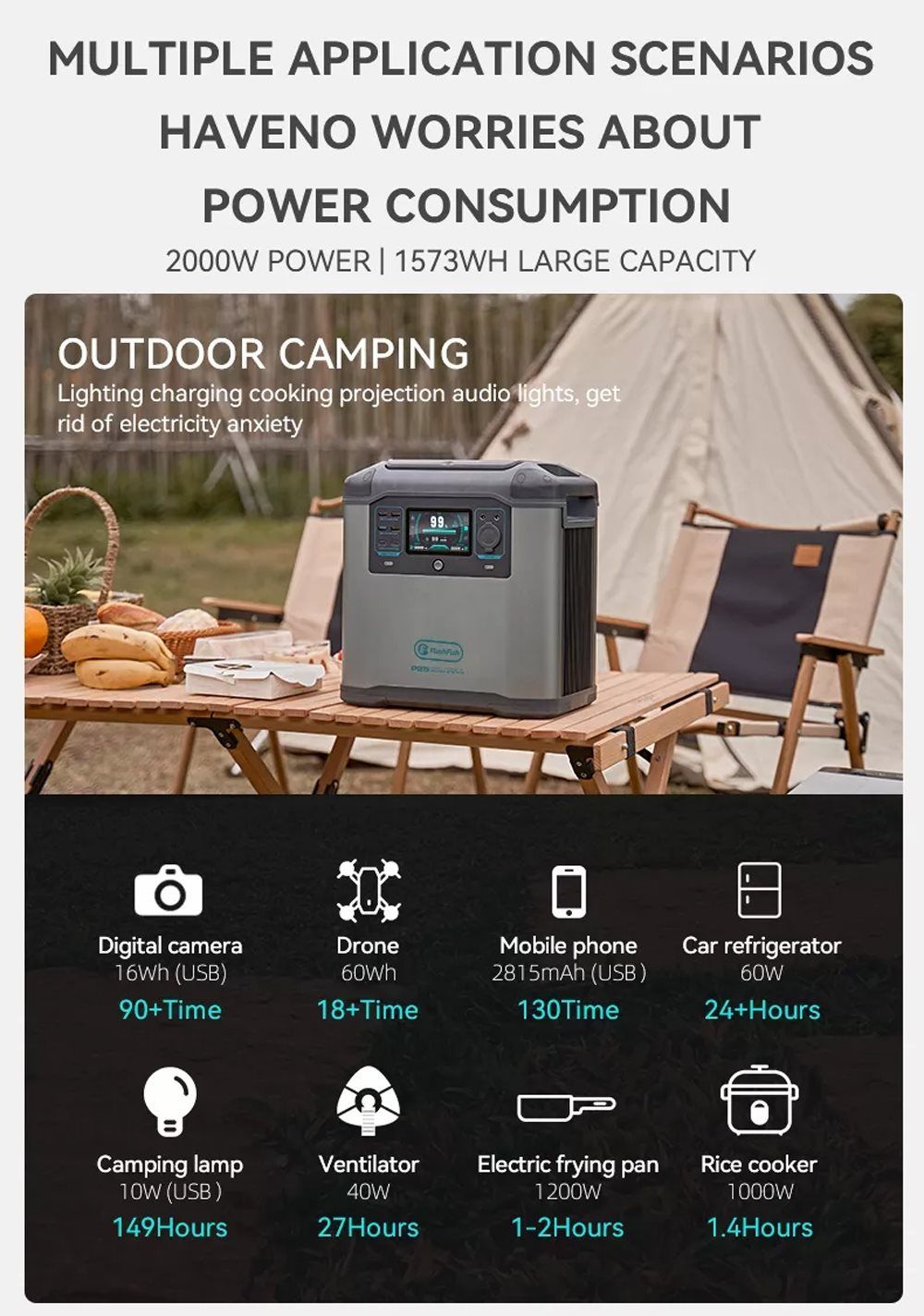 Несмотря на небольшие размеры станции, ее номинальная мощность составляет 2000W, а пиковая мощность - 4000W.