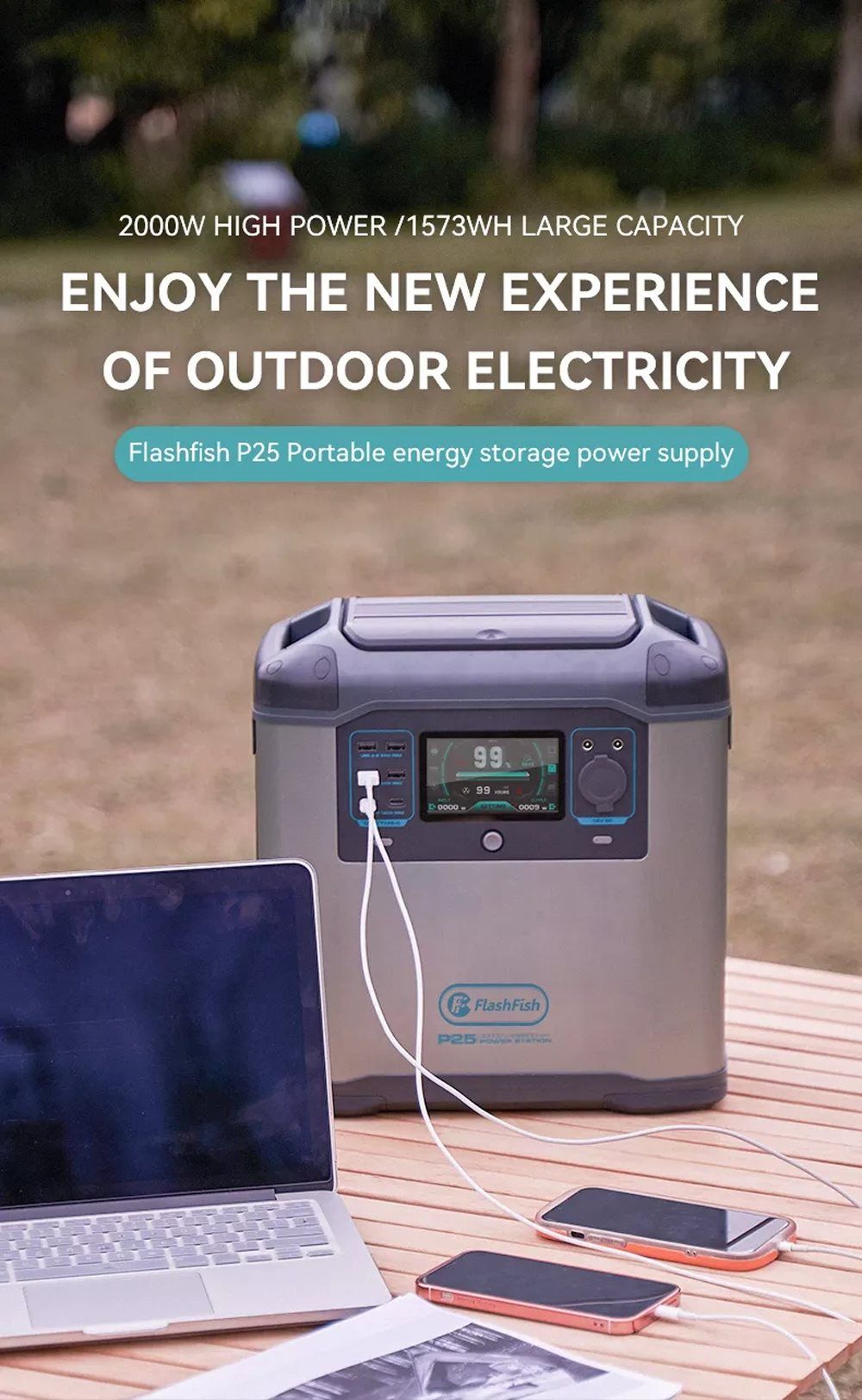 FlashFish P25 – это портативная, компактная и практичная электростанция емкостью в 1573Wh (436800mAh/3.6V) для зарядки электронных устройств.