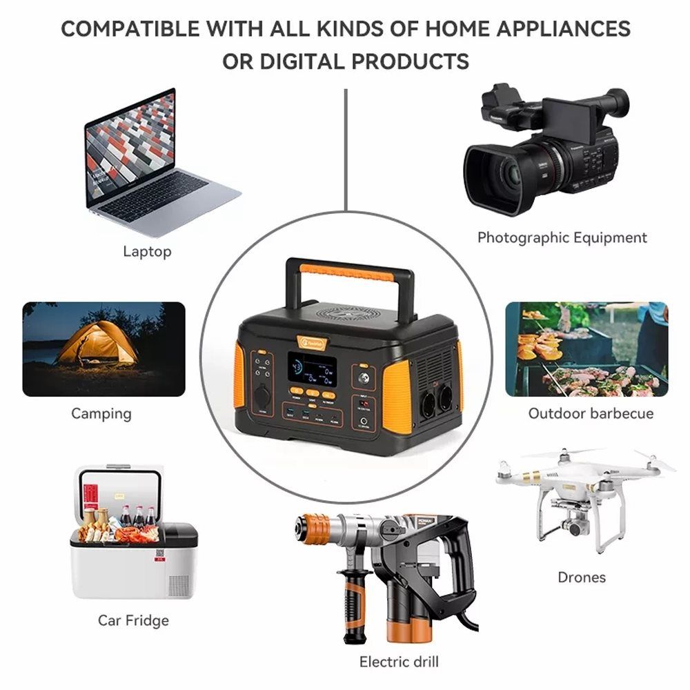 • FlashFish J1000Plus обеспечит достаточное количество энергии для работы основных устройств в течение нескольких часов в зависимости от фактической мощности.