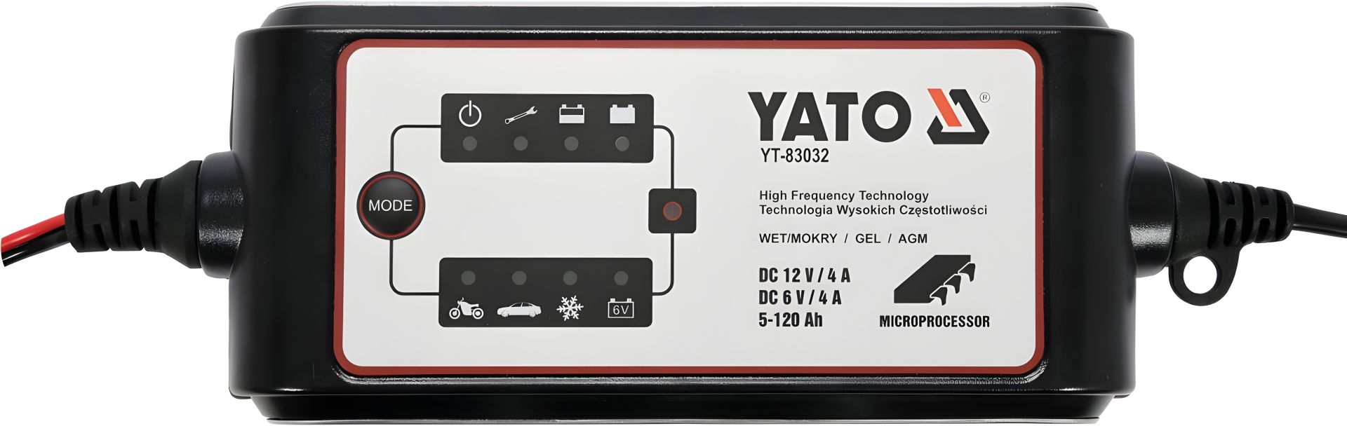 Преобразователь напряжения YATO с сети 230 В AC в 6-12 В DC, для зарядки аккумуляторов; 4А, 5-120 Ач
