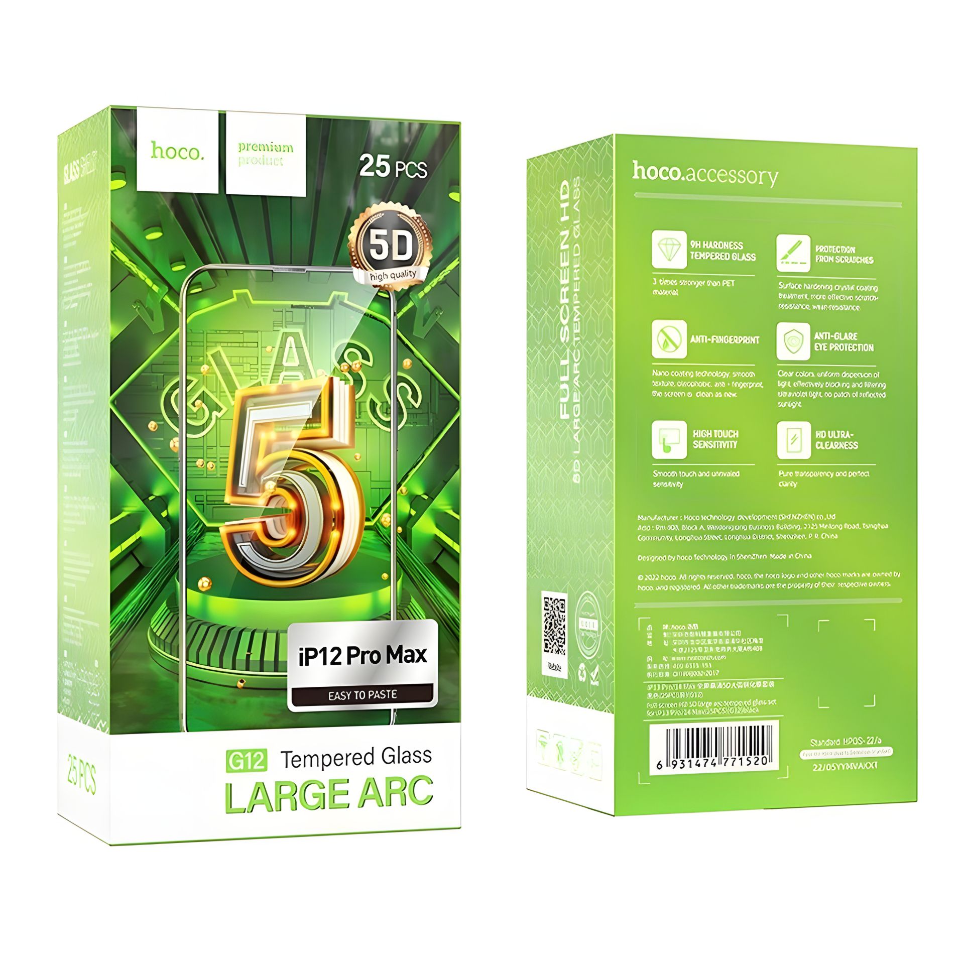 Hoco G12 5D защитное стекло 25 шт для Apple Iphone 12 Pro Max Черный