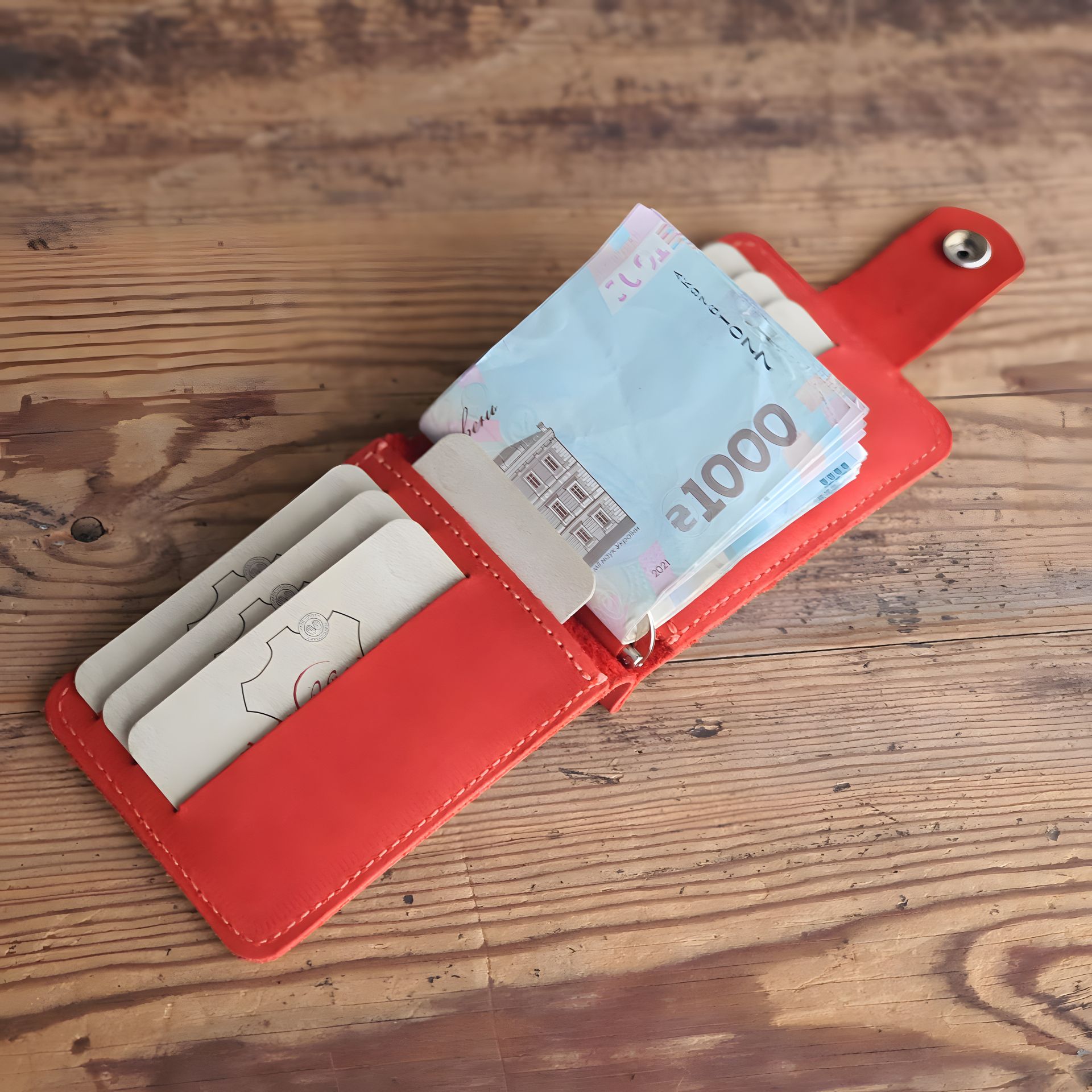 Компактный, кожаный кошелек с прижимом для купюр. Пошит из натуральной, высококачественнй кожи КРС, вощеной, винтажной кожи Crazy Horse.