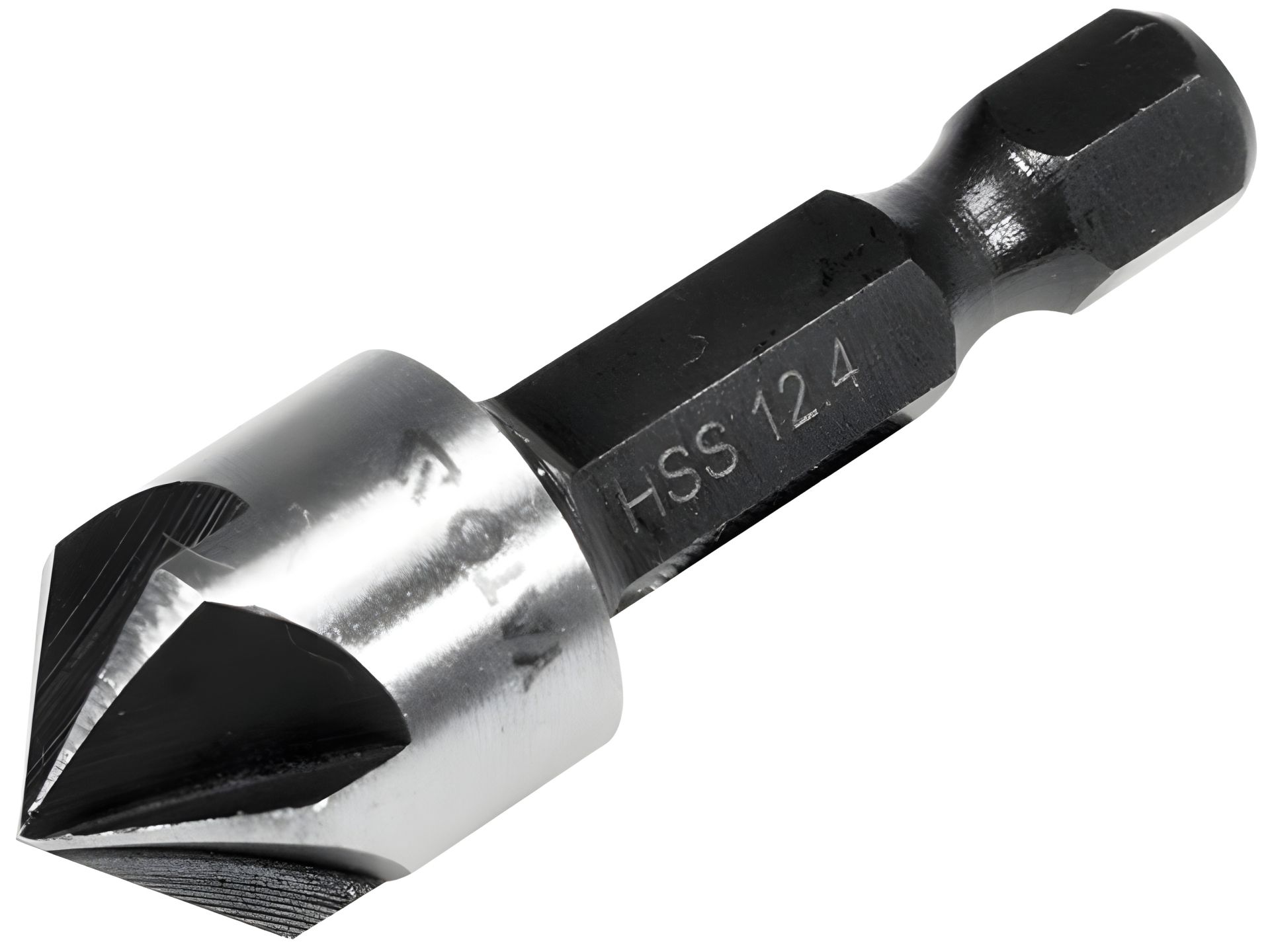 Зенкер конический по металлу YATO : HSS, Ø= 12.4 мм, l= 40 мм, 5 супругов, HEX - 1/4"