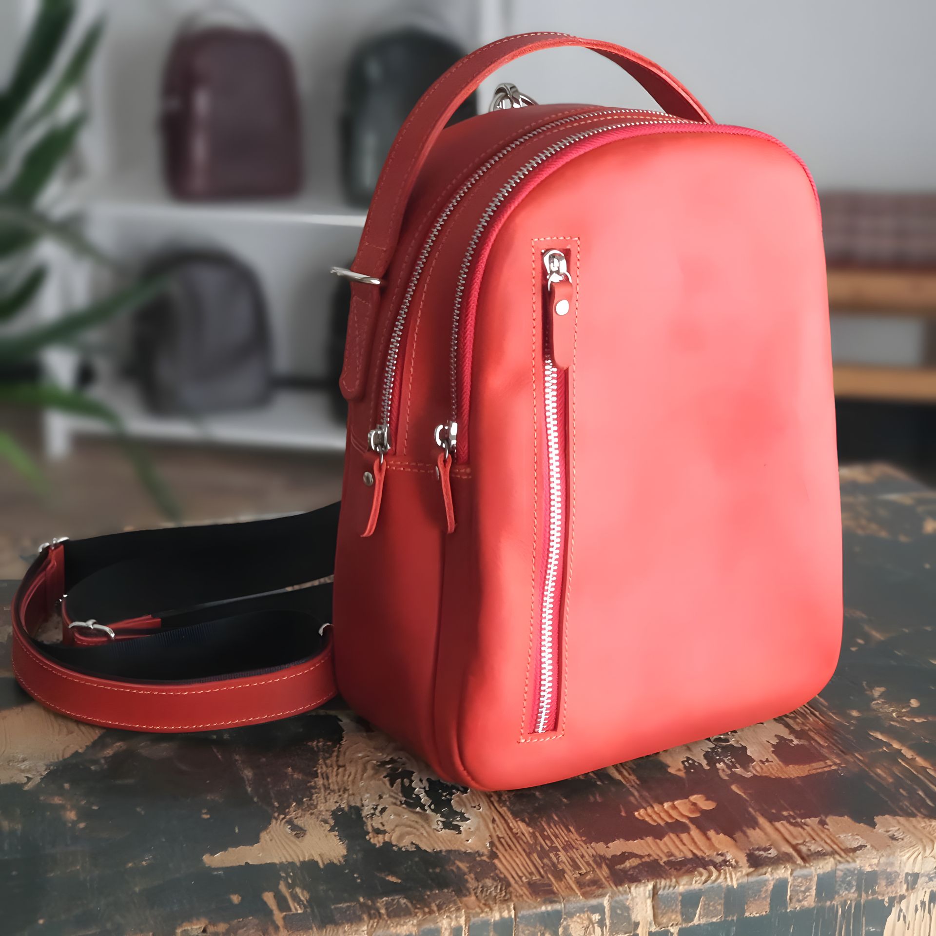 Красный женский кожаный рюкзак GS