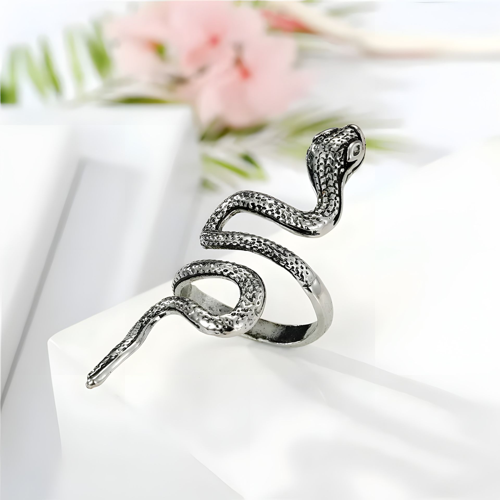 Женское кольцо бижутерия змея серая длинный хвост без размера.