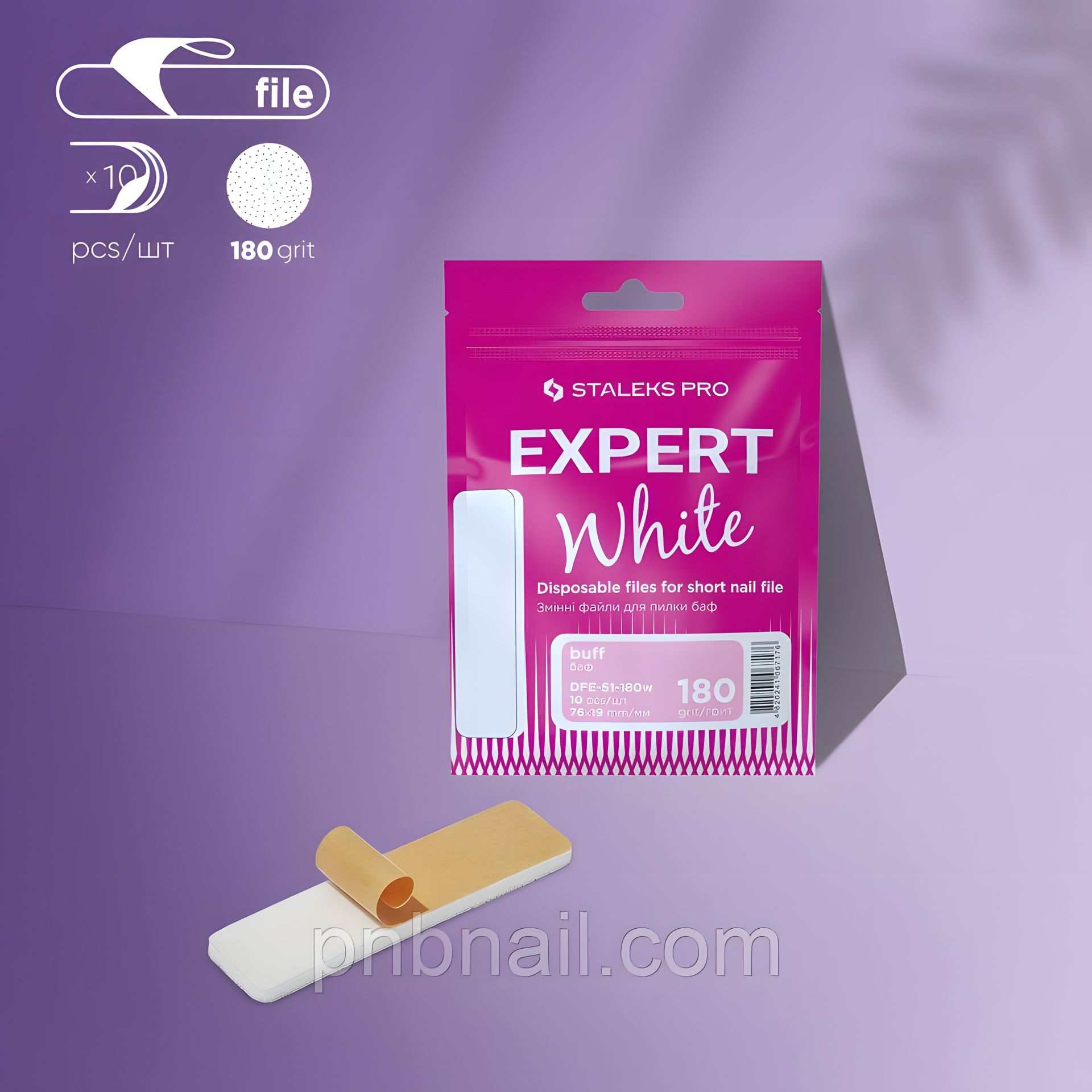 Комплект сменных файлов (баффов) для короткой пилки на пенной основе 180 грит, STALEKS PRO EXPERT 51, 10 штук DFE-51-180w
