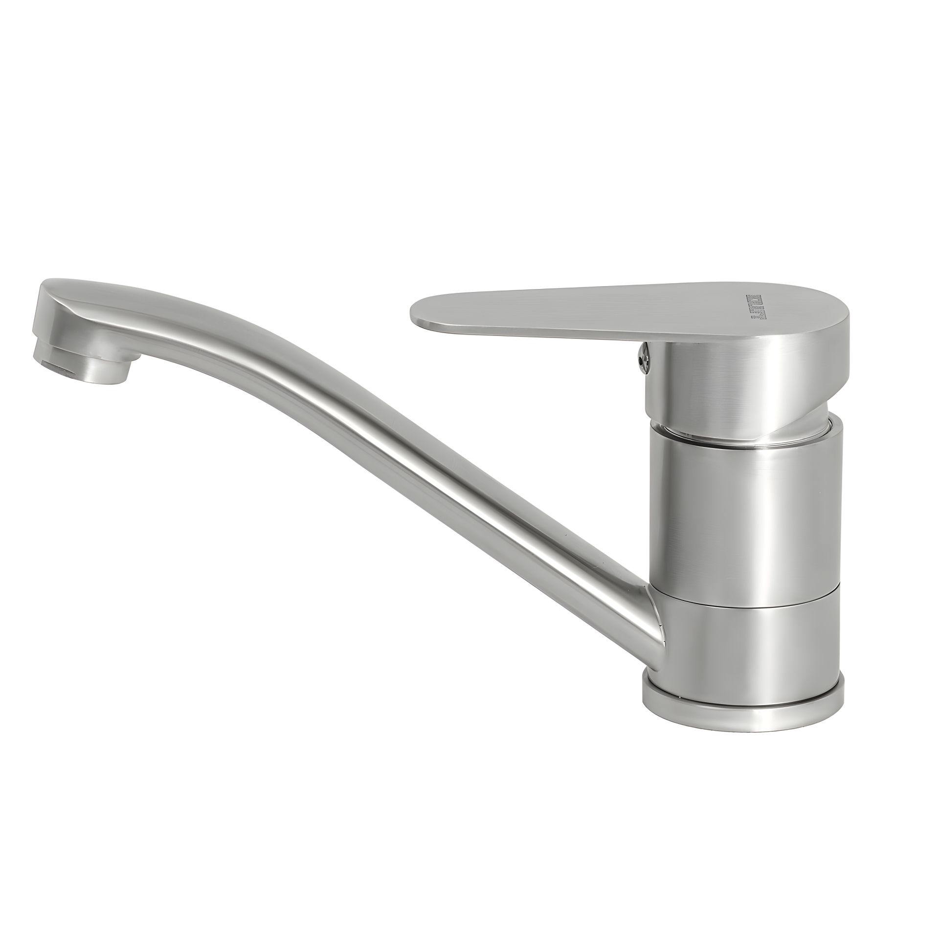 Kraft 3109-15 – змішувач для умивальника, виготовлений з нержавіючої сталі. Він має традиційну форму виливу та поворотний вилив, що дозволяє зручно регулювати напрямок струменя води. Змішувач оснащений одноручним краном, який дозволяє легко регулювати температуру та силу струменя води. Змішувач має керамічний картридж запірного клапана, що забезпечує довгий термін служби та надійність роботи. Вилив оснащений аератором, який економить воду та створює комфортний струмінь води. Даний змішувач монтується на умивальник та має вертикальний спосіб монтажу. Висота змішувача: 9,7 см, Виступ (довжина) гусака: 15,5 см, Висота до точки виливу: 9 см, Посадкове місце: 5 см. У комплекті йдуть два шланги підключення води, довжиною 45 см. Гарантійний термін 12 місяців.