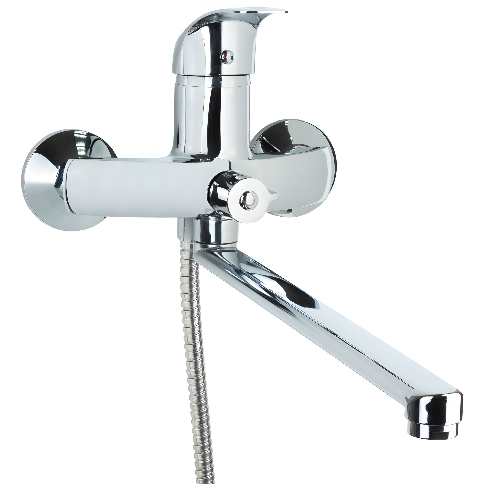 Tau SD-2C243C – це змішувач для ванної кімнати, який забезпечить комфорт та зручність під час користування. Виготовлений у кольорі хром з силуміну, має класичний дизайн. Цей одноважільний змішувач має традиційну форму виливу з аератором та можливістю повороту, що дозволяє легко регулювати напрямок струменя води. Монтаж цього змішувача настінний, горизонтальний способом. Запірний клапан на основі керамічного картриджа забезпечує довговічність використання. Змішувач має у комплекті тримач для душової лійки та душовий шланг. Гарантійний термін цього товару становить 12 місяців.