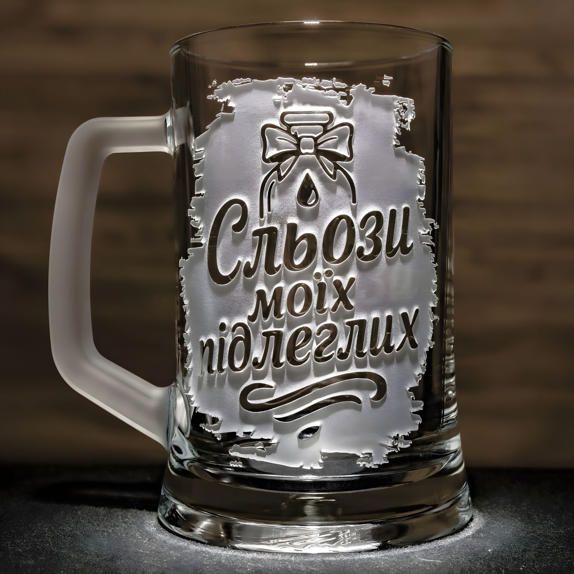 Унікальний пивний келих з гравіюванням "Сльози моїх підлеглих" та матовою ручкою — подарунок для шефа