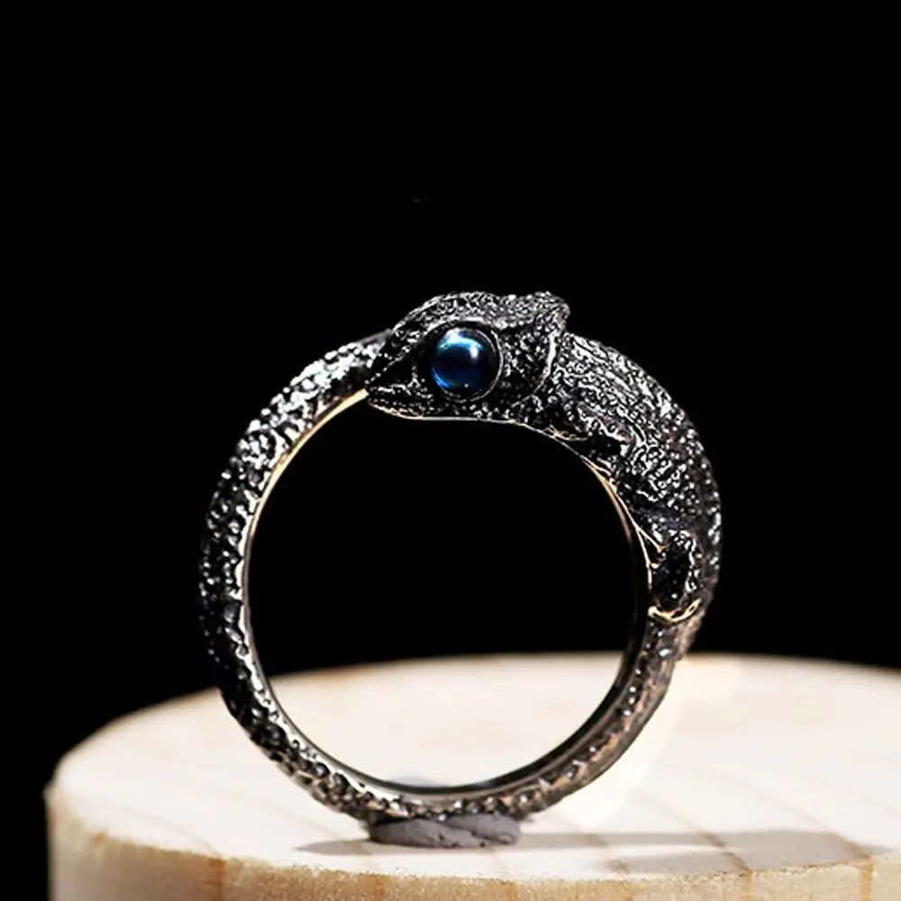 Кільце ящірка хамелеон каблучка у вигляді ящірки з синіми очима