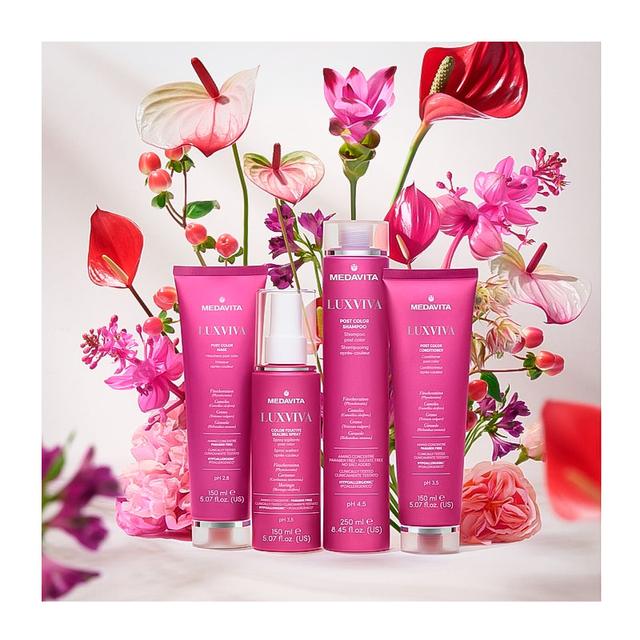 Спрей Medavita Luxviva Color Fixative Sealing Spray розроблений для живлення, зволоження, блиску, шовковистості та фіксації пігменту фарбованого волосся. Завдяки вмісту натуральних активних інгредієнтів продукт робить волосся м'яким і блискучим, відновлючи і зміцнючи його. Спрей також містить фільтр UVA/UV.