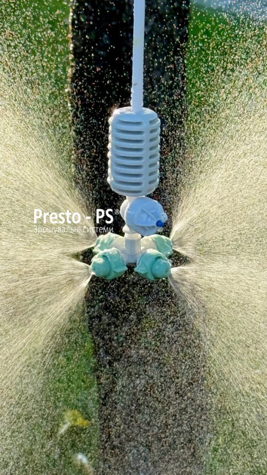 Підвісна установка з клапаном антидренажу Presto-PS та мікроджетом Туман (40303) використовується зі сліпою трубкою діаметром 16 і 20 мм або з трубкою для крапельниць діаметром 5 мм для побудови комбінованих систем крапельного поливу. Перевага та особливість крапельниці Туман - це можливість її використання для підкронового поливу рослин. Розпилення імітує дрібний туман і максимально наближене до природного зволоження ґрунту та повітря. Застосовується цей вид крапельниць для підвісного методу поливу на відкритому ґрунті або у теплицях, для зволоження повітря.