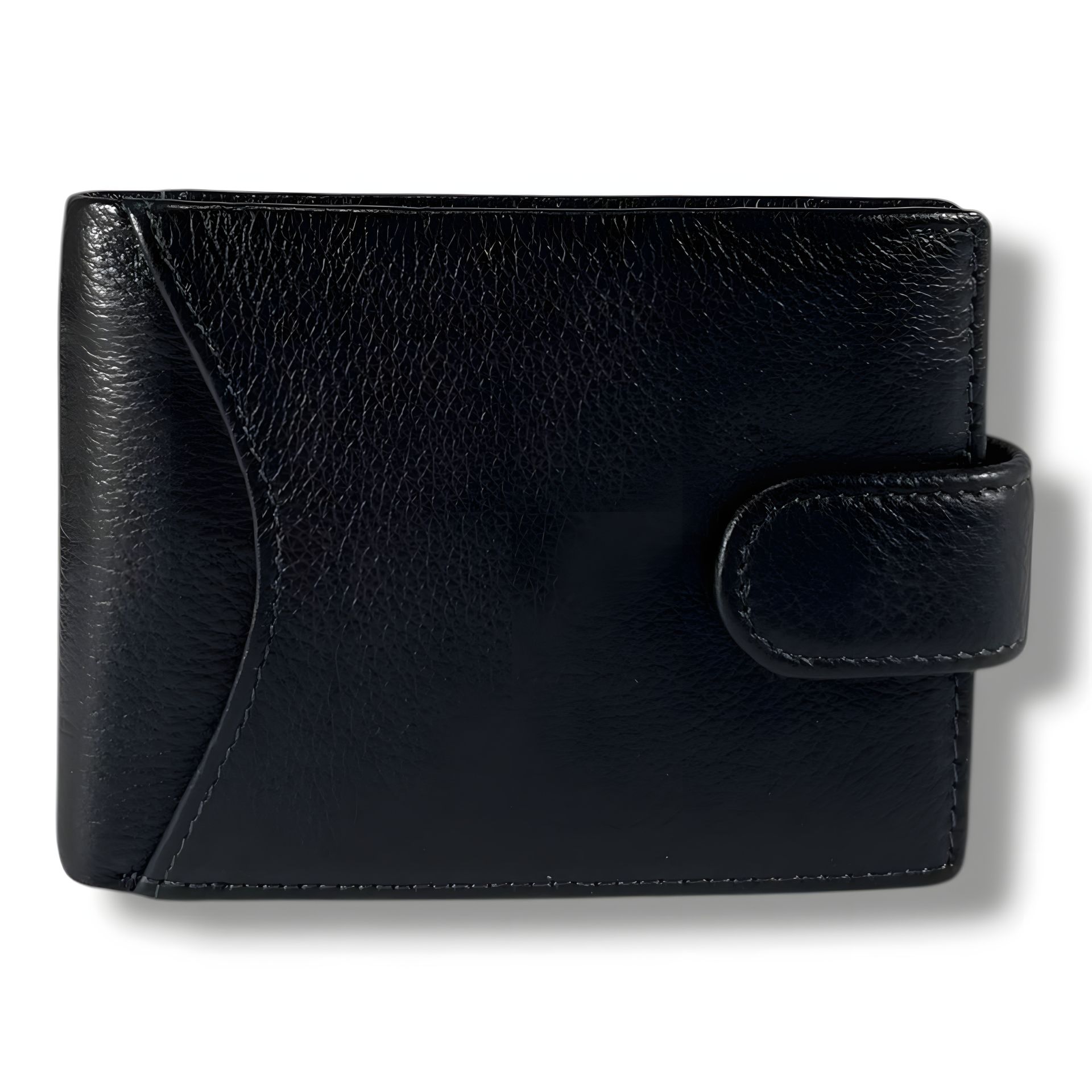 Солідний аксесуар для сучасного чоловіка — цей гаманець виконаний із високоякісної натуральної шкіри та має зручний компактний розмір. Класичний чорний колір, продумане внутрішнє наповнення й зручна кнопкова застібка роблять його ідеальним для щоденного використання.