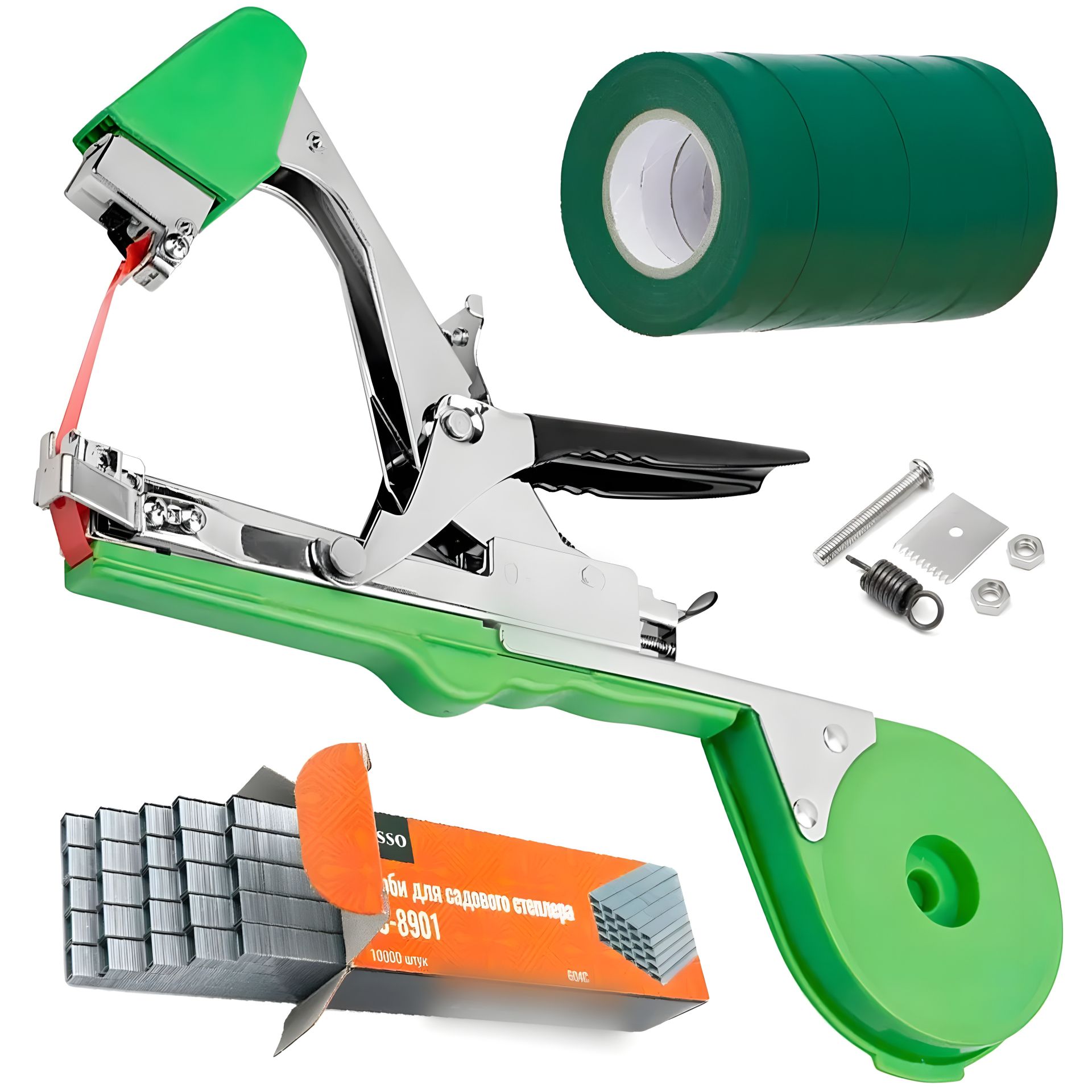 Stepler + Скоби (10100шт) + Стрічка (8 шт/240 м): Набір для підв'язки рослин
