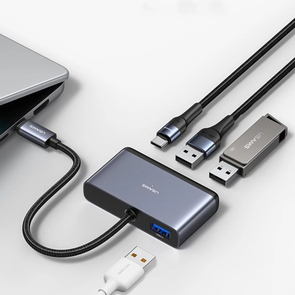 USB Хаб Usams US-SJ627 4in1 Multifunctional Type-C Type-C*1+USB3.0*1+USB 2.0*2 dark grey