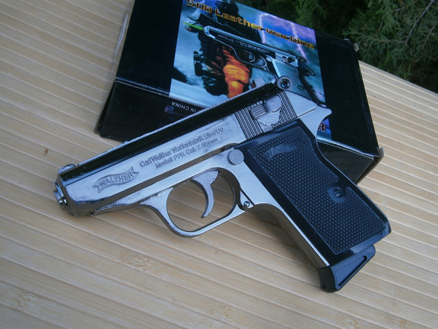 Запальничка пистолет Walther РР "Вальтер" турбо газова металева сувенірна чорна глянцева