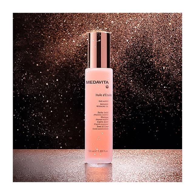 Олія Medavita Huile d'Etoile Revealing Oil швидко поглинається волоссям, миттєво надає блиску, шовковистості та щільності, роблячи його м’яким і слухняним. Засіб відновлює пошкоджену структуру волосся, тонізує, додає еластичності і захищає від негативних факторів довкілля. Олійка має приємний аромат та легку тестуру, що не обтяжує волосся. Продукт можна використовувати щодня, наносячи на вологе або сухе волосся.