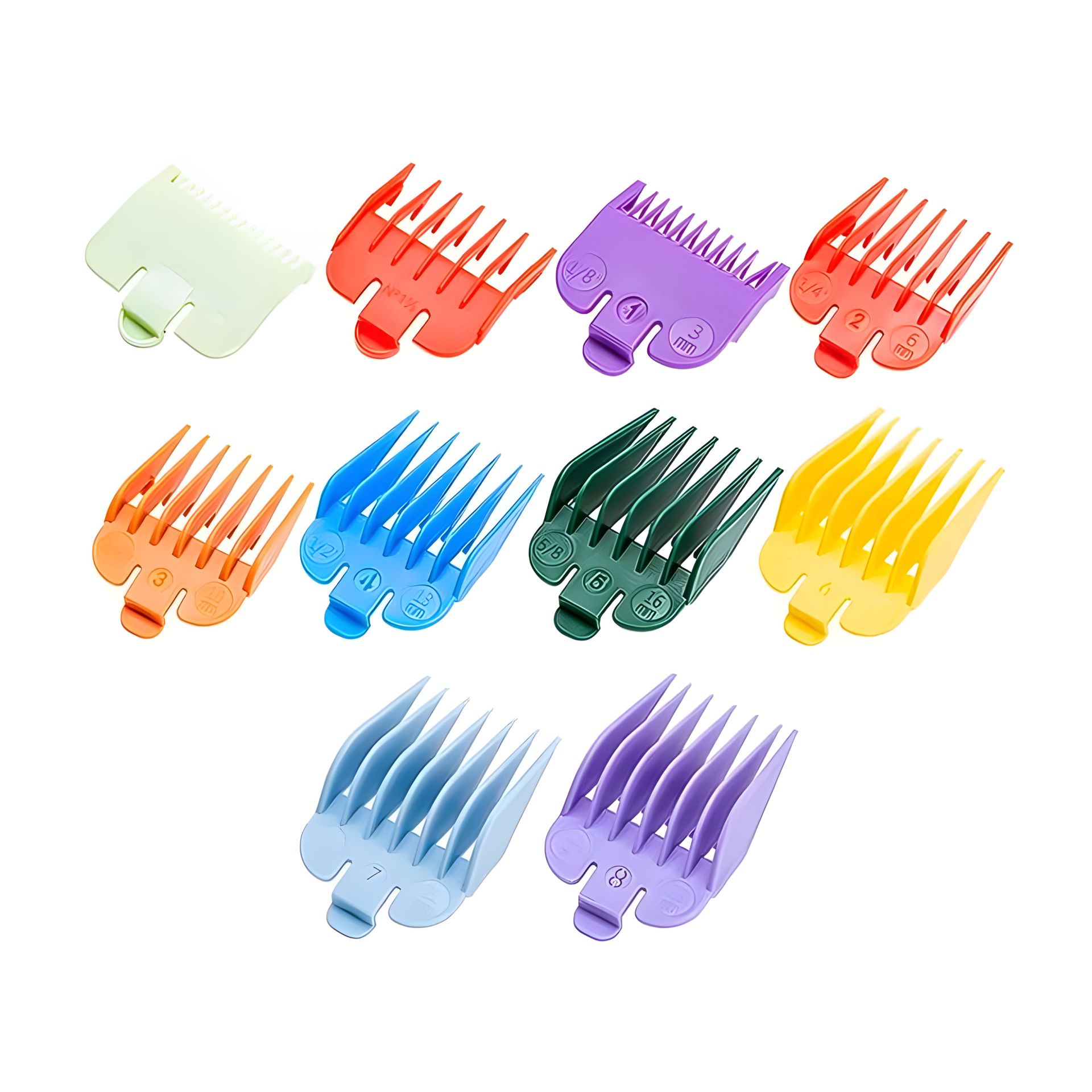 Набір насадок для машинки для стрижки волосся в пластик боксі різнокольорові, набір 10 штук, 1,5-25 мм