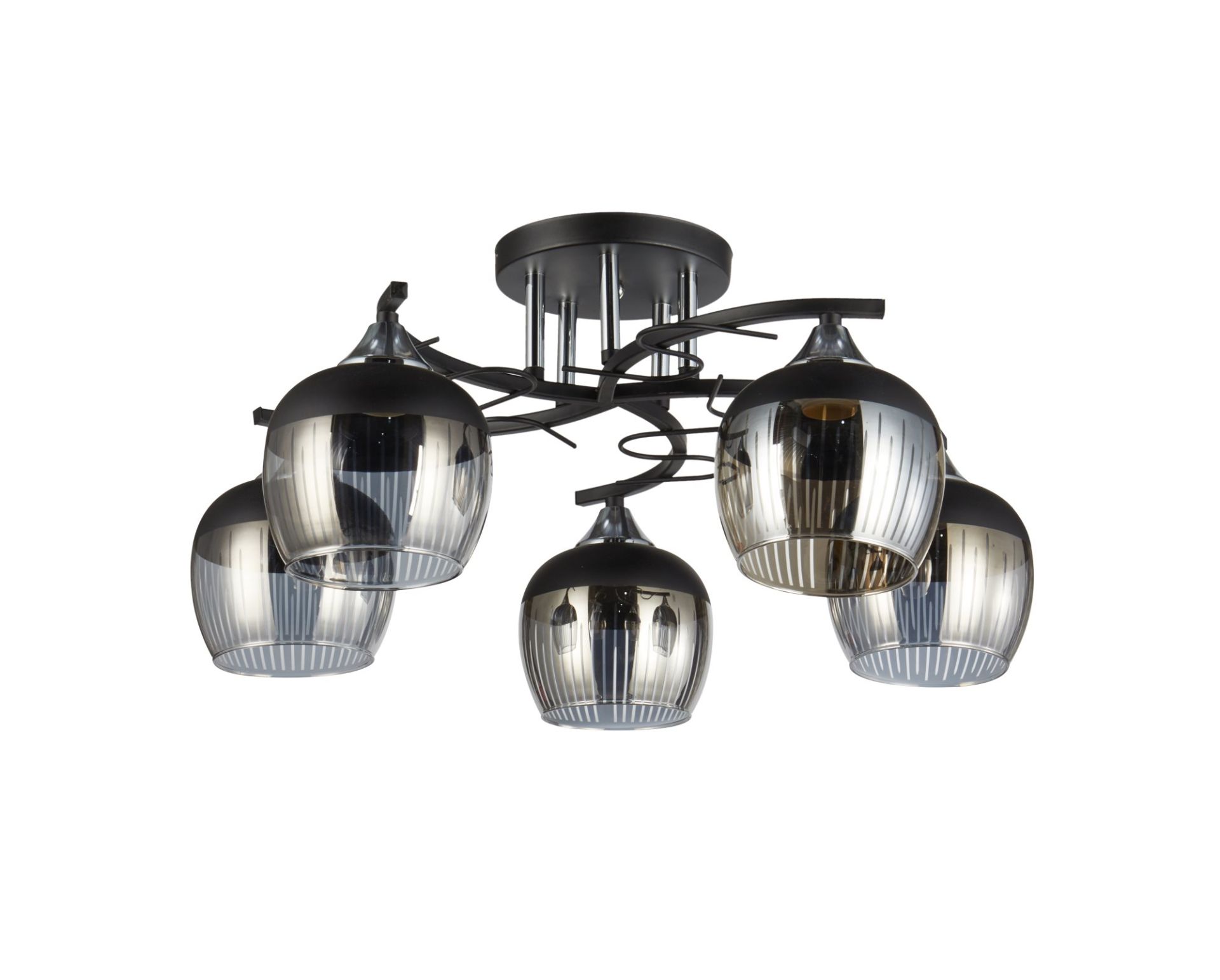 Плафони виготовлені зі скла, добре пропускають світло та створюють м’яке, комфортне освітлення. Модель оснащена п'ятьма цоколями E27, що дає можливість підібрати лампи з потрібною яскравістю й температурою світла.