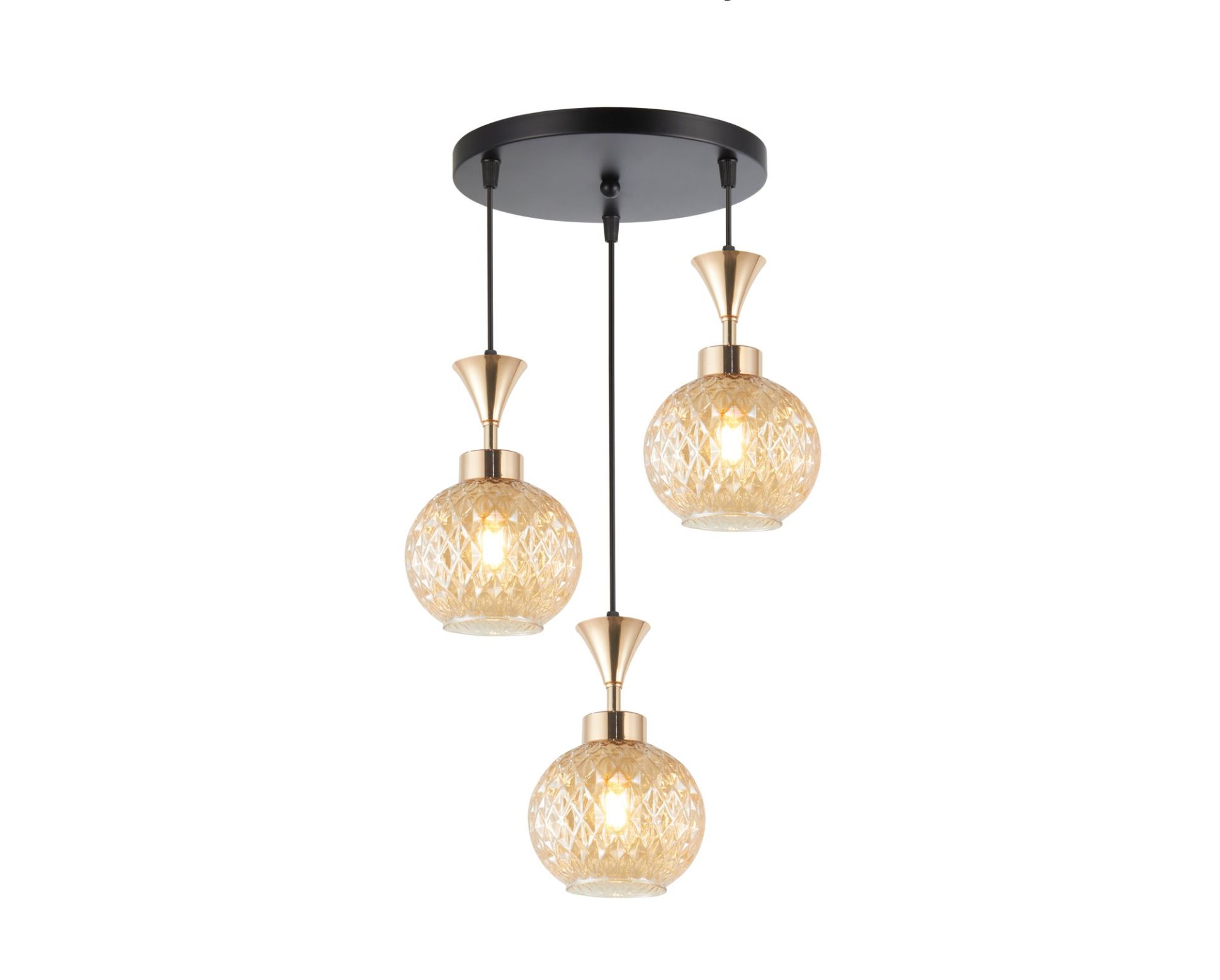 Люстра підвісна INTEREES V W8001-3 AMBER BK+FG — підвісний світильник із виразним поєднанням сучасного стилю та теплого освітлення. Модель має три окремі плафони, кожен з яких підвішується на власному дроті, що дозволяє регулювати висоту та формувати композицію під конкретний інтер’єр.