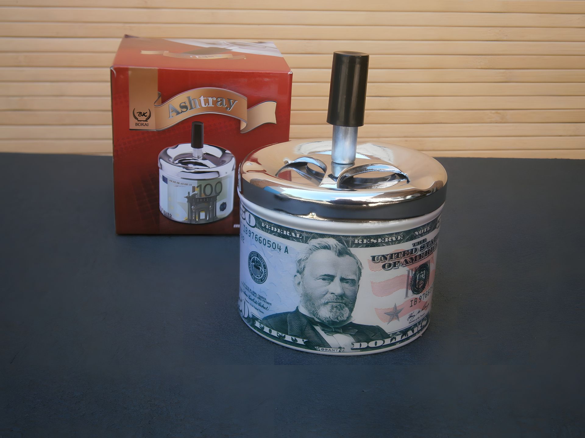 Попільничка - дзига бездимна металева "П'ятдесят доларів США"