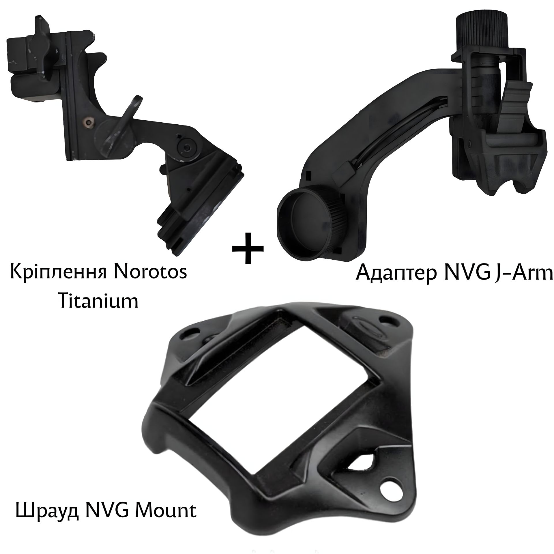 Комплект кріплень для встановлення ПНБ на шолом (J-Arm + Шрауд + Norotos Titanium) – це комплексне рішення для тих, хто потребує надійного та зручного способу кріплення приладів нічного бачення на шолом.