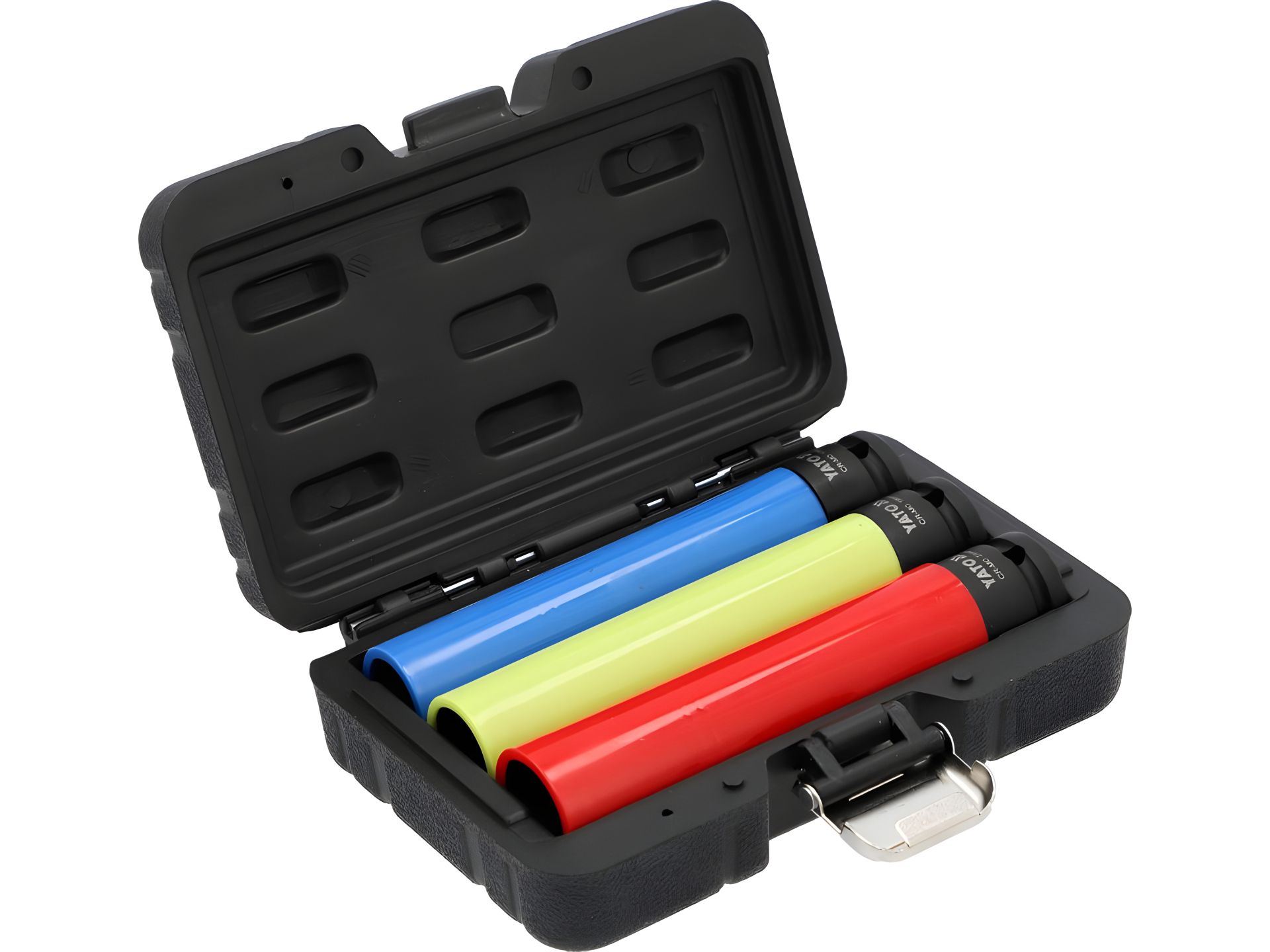 - розміри головок: 17, 19, 21 мм, кольорове кодування для легшого дозволу