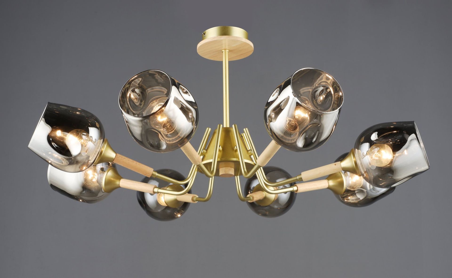 Підвісна люстра VALESO N6619/8 — витончене рішення для великого простору. Поєднання теплого відтінку золота, декоративних дерев’яних елементів та скляних плафонів формує гармонійний акцент у вітальні, обідній зоні або просторій спальні.