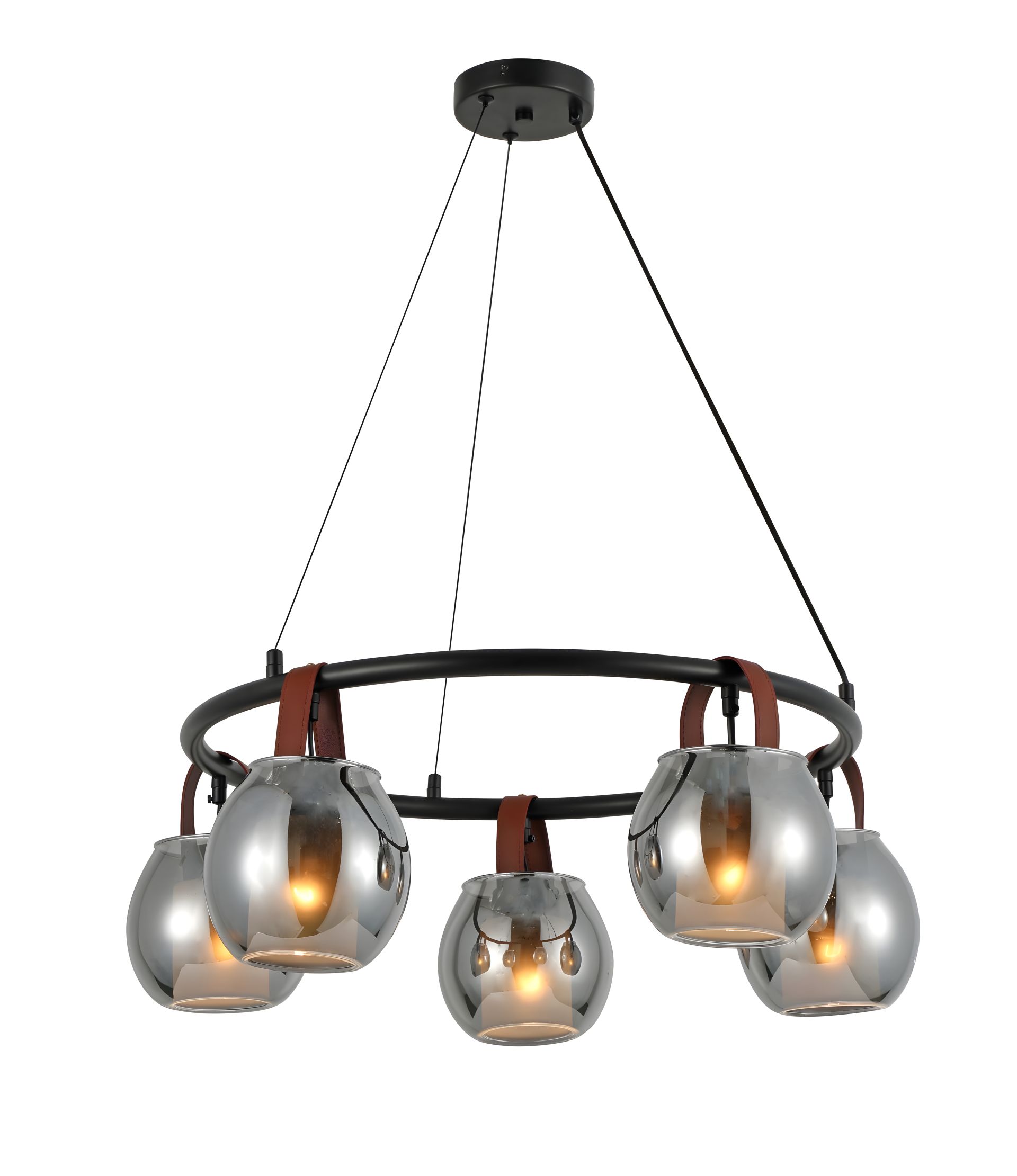 G 321029/5 Matte Black — стильна підвісна люстра у лофт-стилі, яка ідеально поєднує мінімалізм чорного матового металу та ефектний дизайн. П’ять плафонів розташовані симетрично, створюючи гармонійний образ і наповнюючи простір м’яким рівномірним світлом.