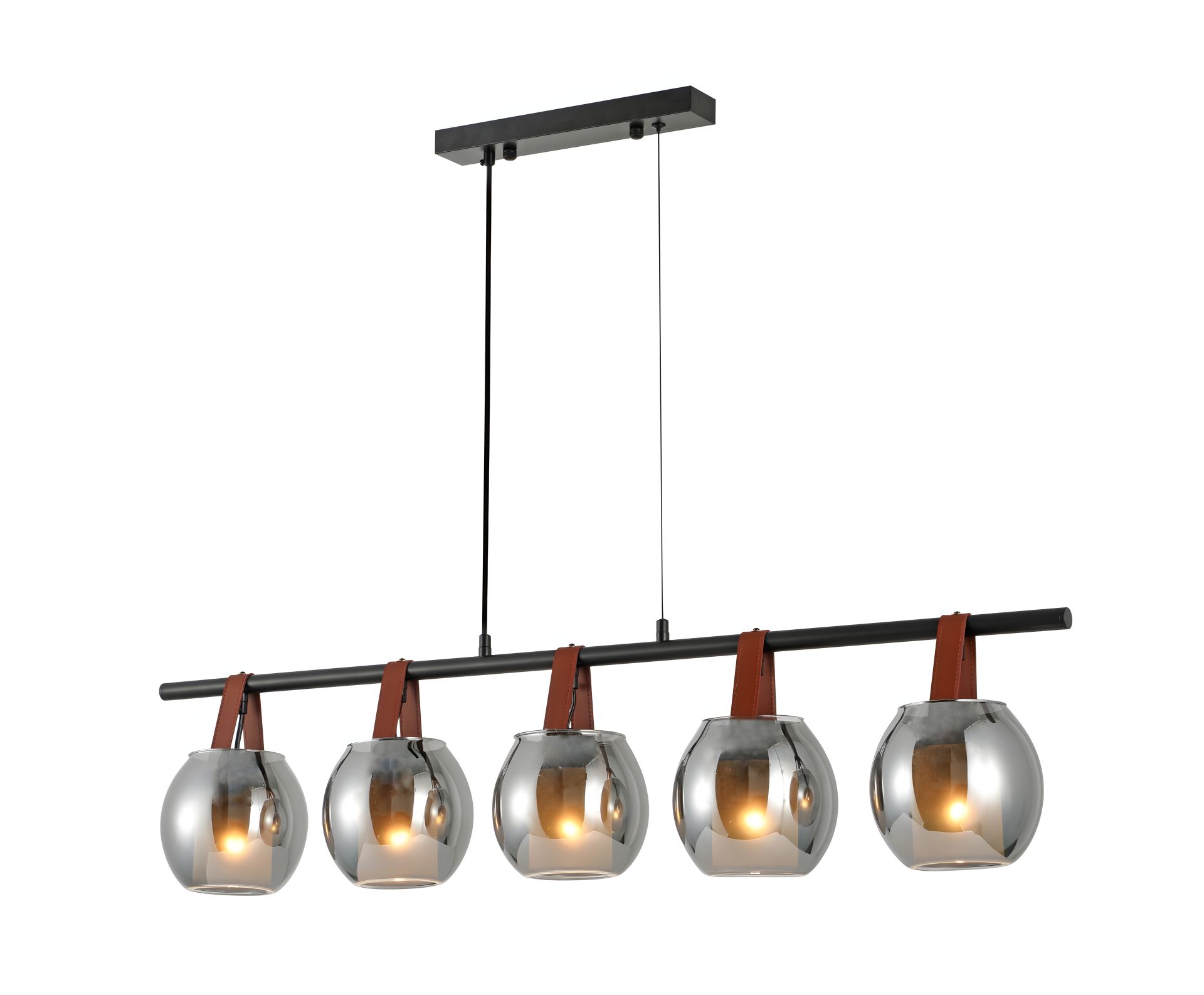 G 321028/5 Matte Black — стильна підвісна люстра в сучасному стилі лофт, яка поєднує лаконічний дизайн і ефектний вигляд. Матовий чорний колір основи надає моделі елегантності та підкреслює її сучасний характер. Завдяки витягнутій формі й п’яти джерелам світла люстра чудово підходить для освітлення просторих приміщень — кухонь-студій, віталень або обідніх зон.