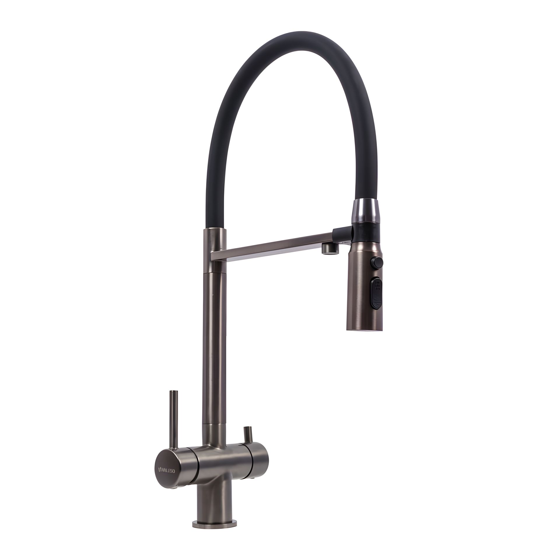 Кухонний змішувач NES-TN65 з гнучким виливом під фільтр Valeso (PVD чорний)
