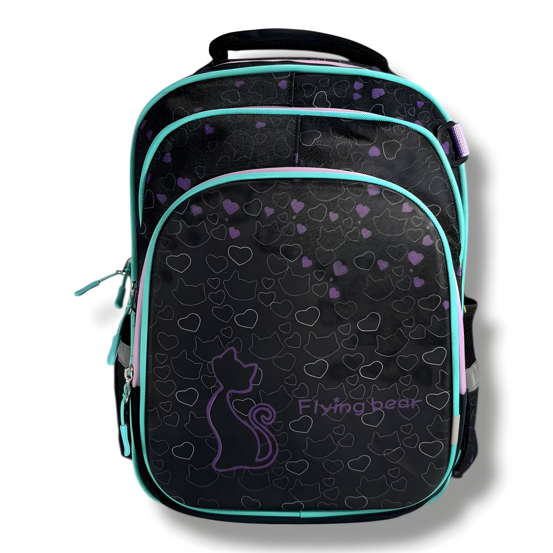Шкільний рюкзак для дівчинки з принтом “Котик та сердечка” – стиль і комфорт для молодшої школи