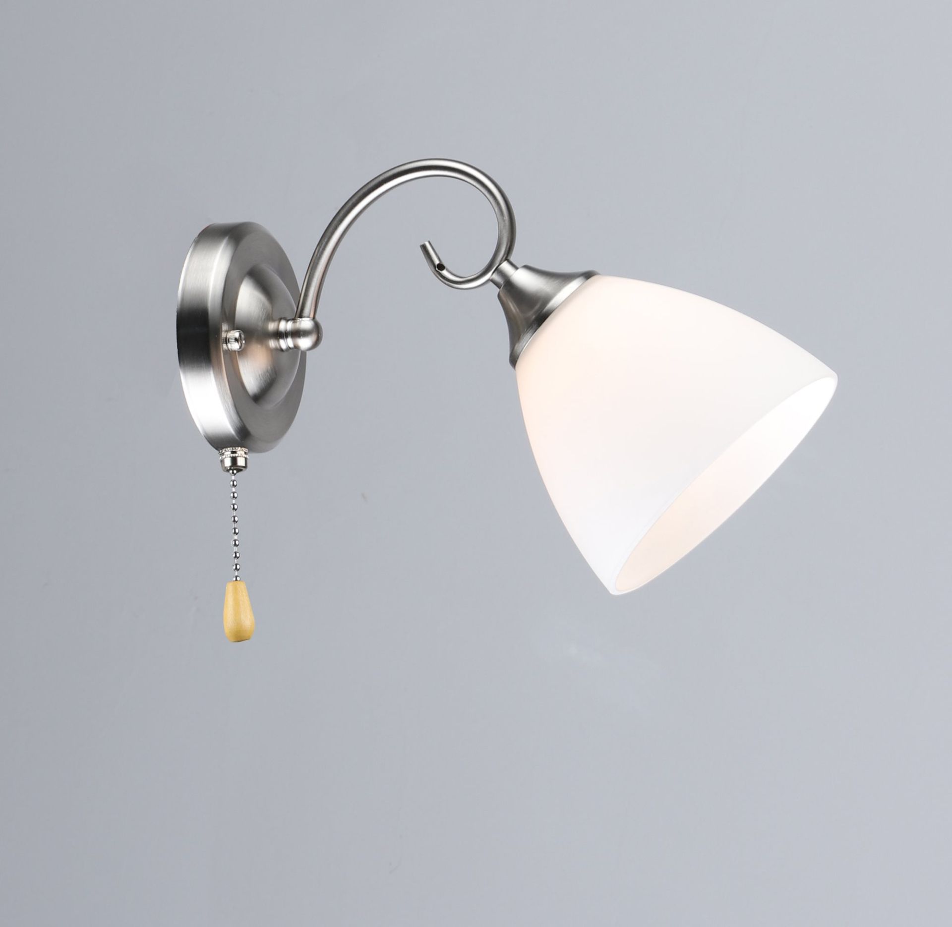 Бра N6681/1W виконане в класичному стилі, поєднуючи елегантність і практичність. Завдяки витонченому дизайну в кольорі нікель і скляному плафону, світильник створює м’яке, приємне освітлення, ідеальне для вітальні, спальні або коридору. Висока якість матеріалів – сталь та скло – забезпечує надійність і довговічність виробу.