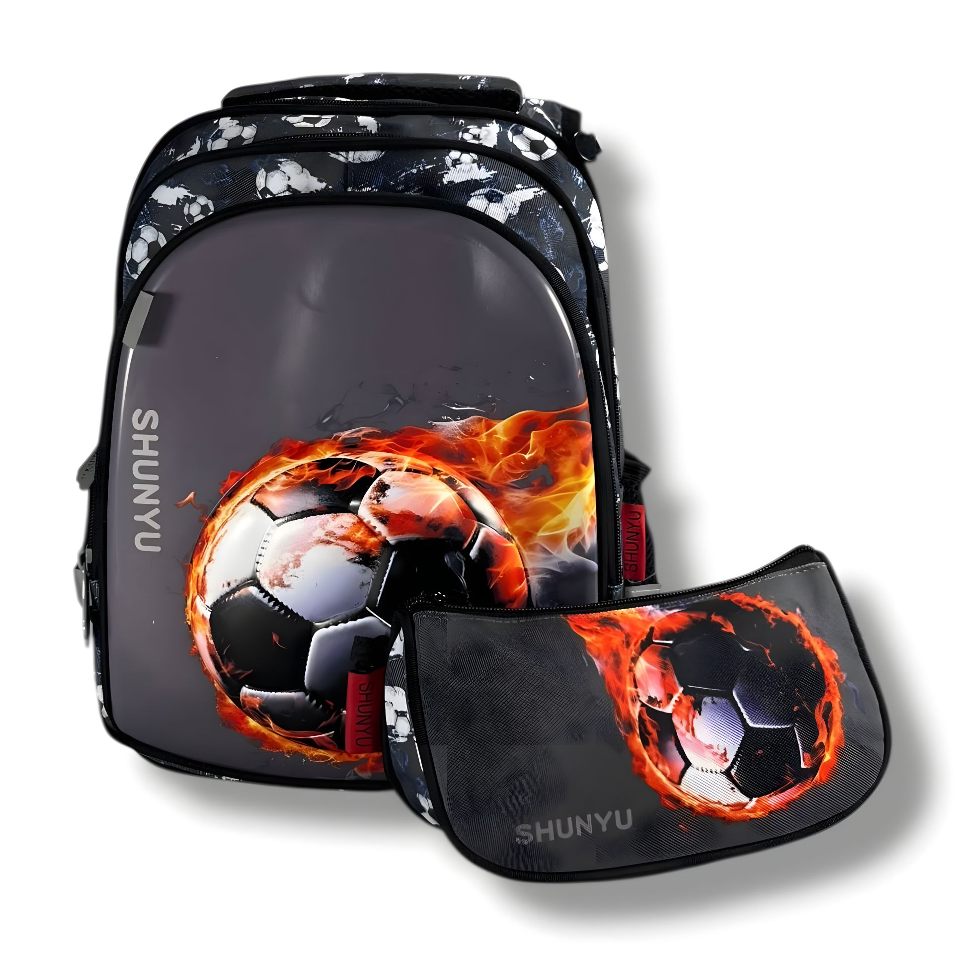 Шкільний водонепроникний рюкзак для хлопчиків з принтом "М’ячик", пенал у комплекті