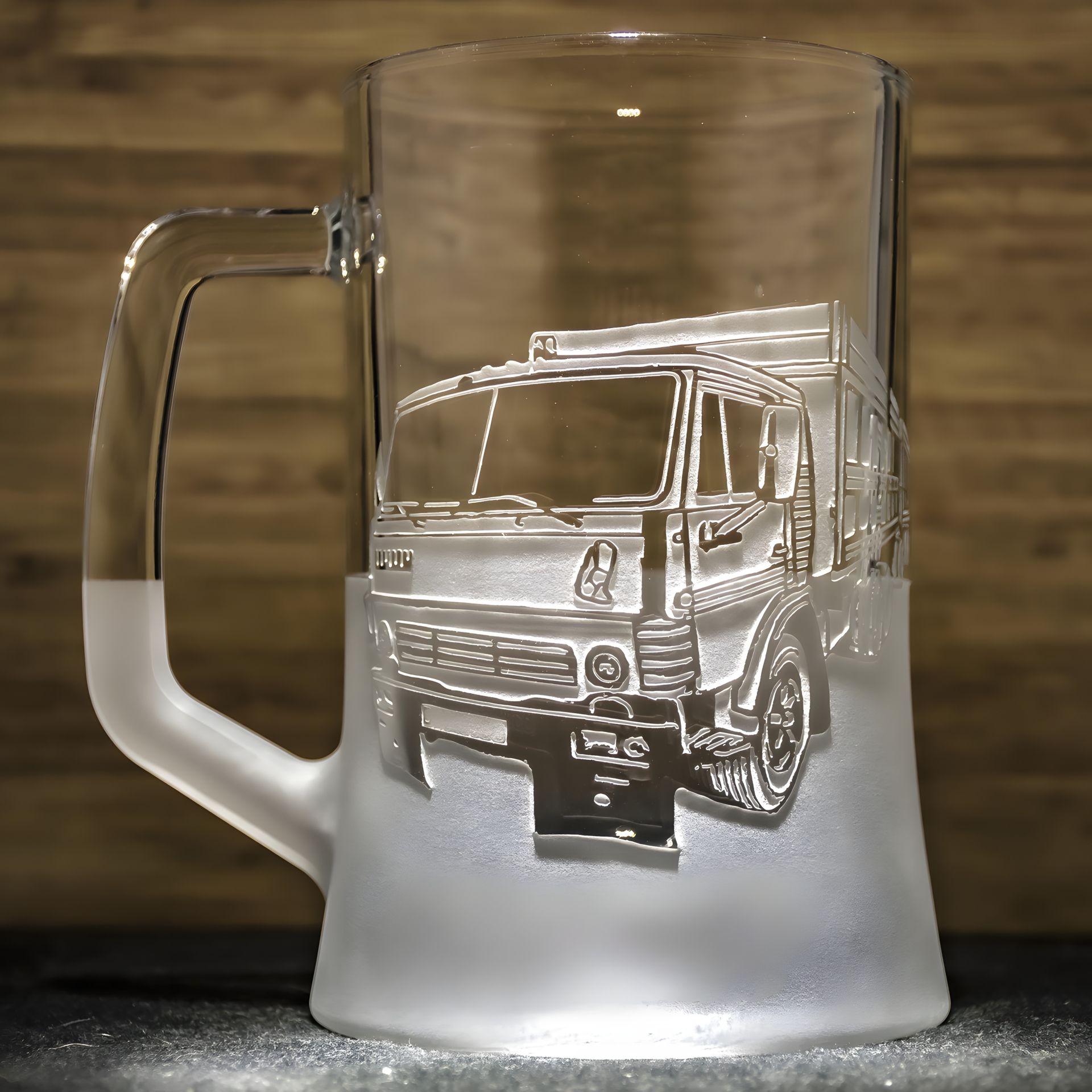 Cкляний кухоль для пива з ручним механічним гравіюванням вантажівка КАМАЗ у подарунковій коробці