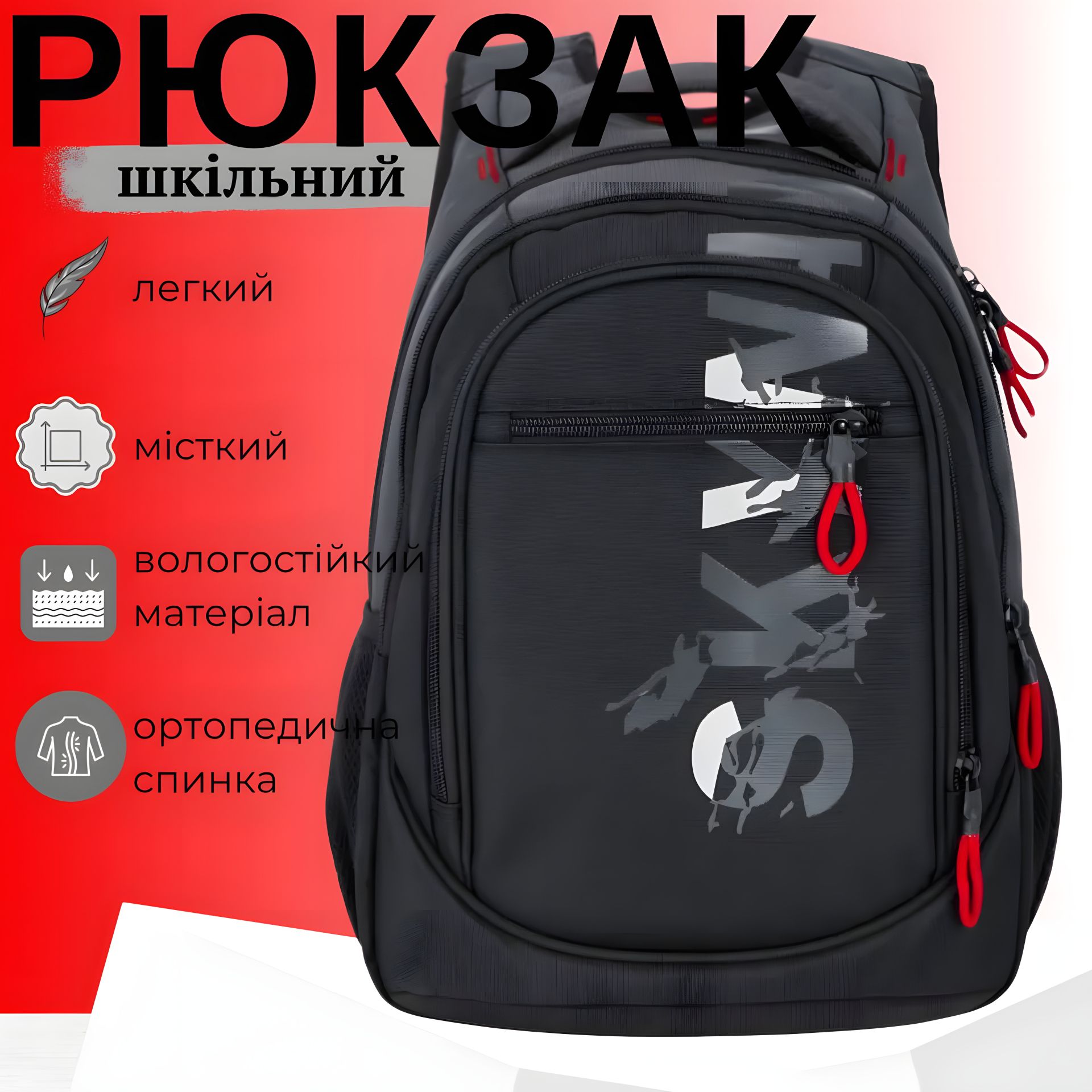 Шкільний рюкзак Sky Name (Winner) для підлітків, три відділення, червоно-чорний