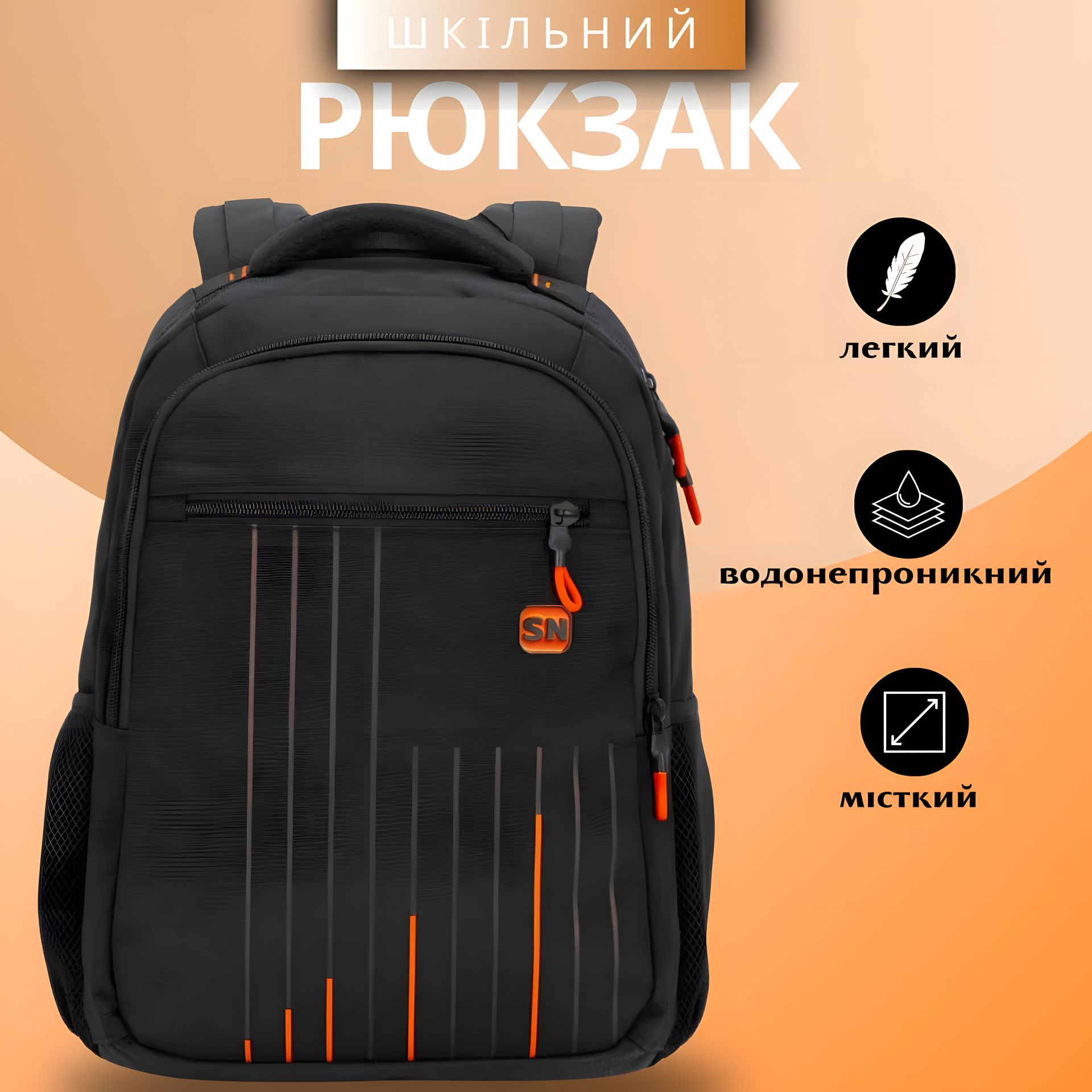 Шкільний рюкзак Sky Name (Winner) для хлопчиків, з 3 відділеннями, ортопедична спинка, чорний з помаранчевим