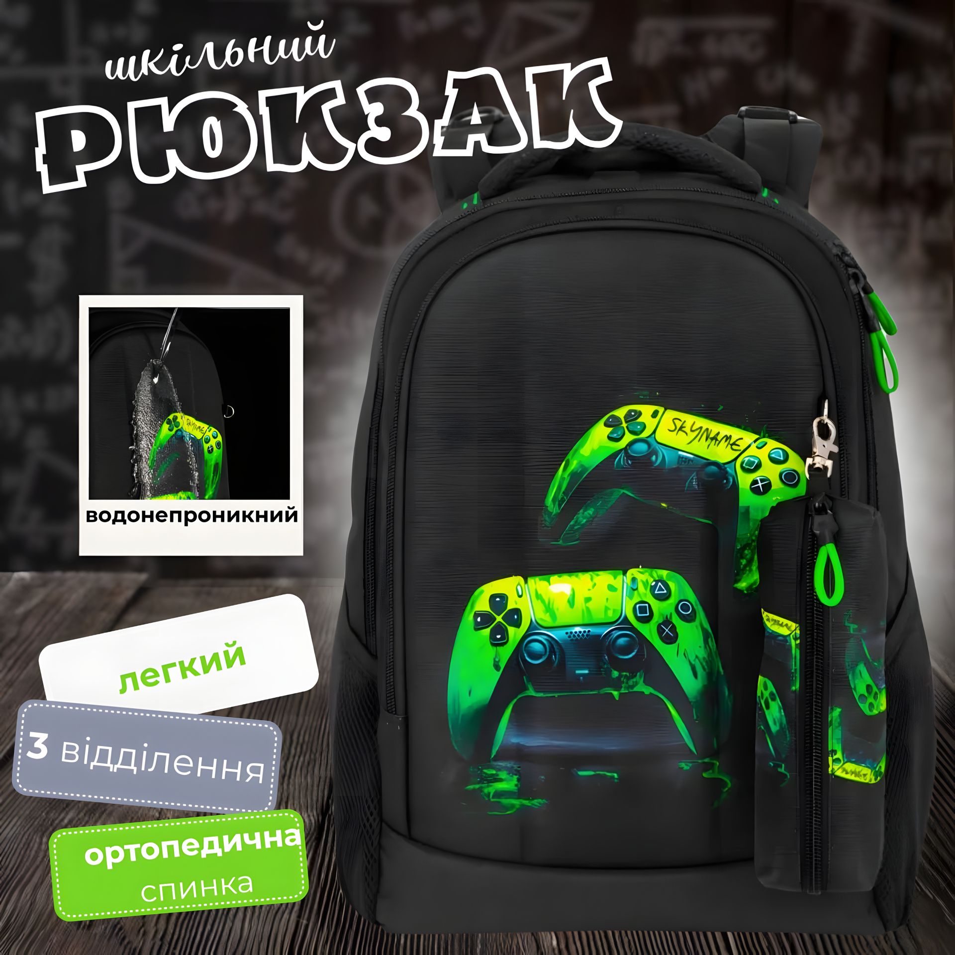 Шкільний рюкзак Winner/SkyName для підлітків, пенал у комплекті, принт Джойстики