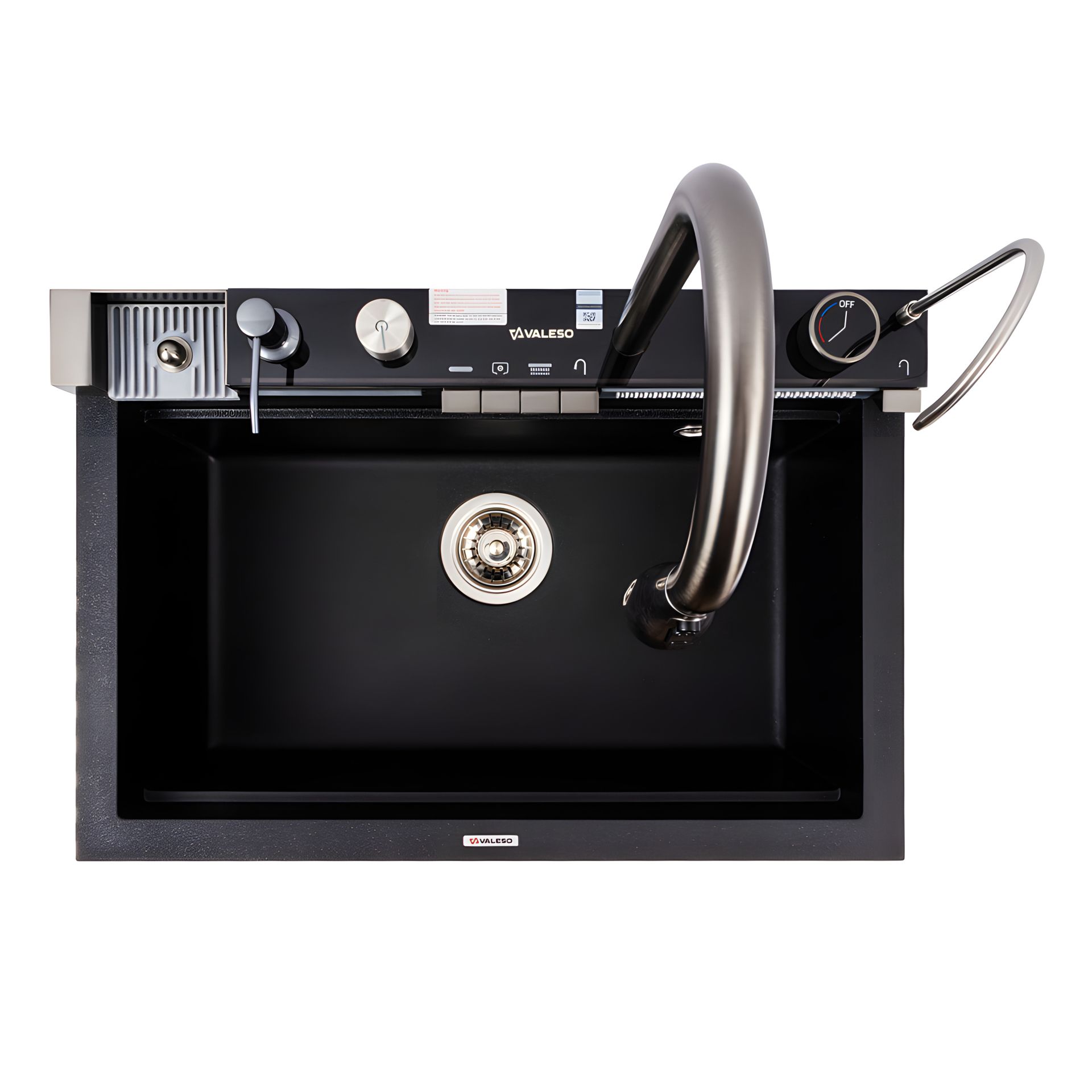 Гранітна мийка VALESO 6846 IRENA матова (чорний металік) з розширеною комплектацією