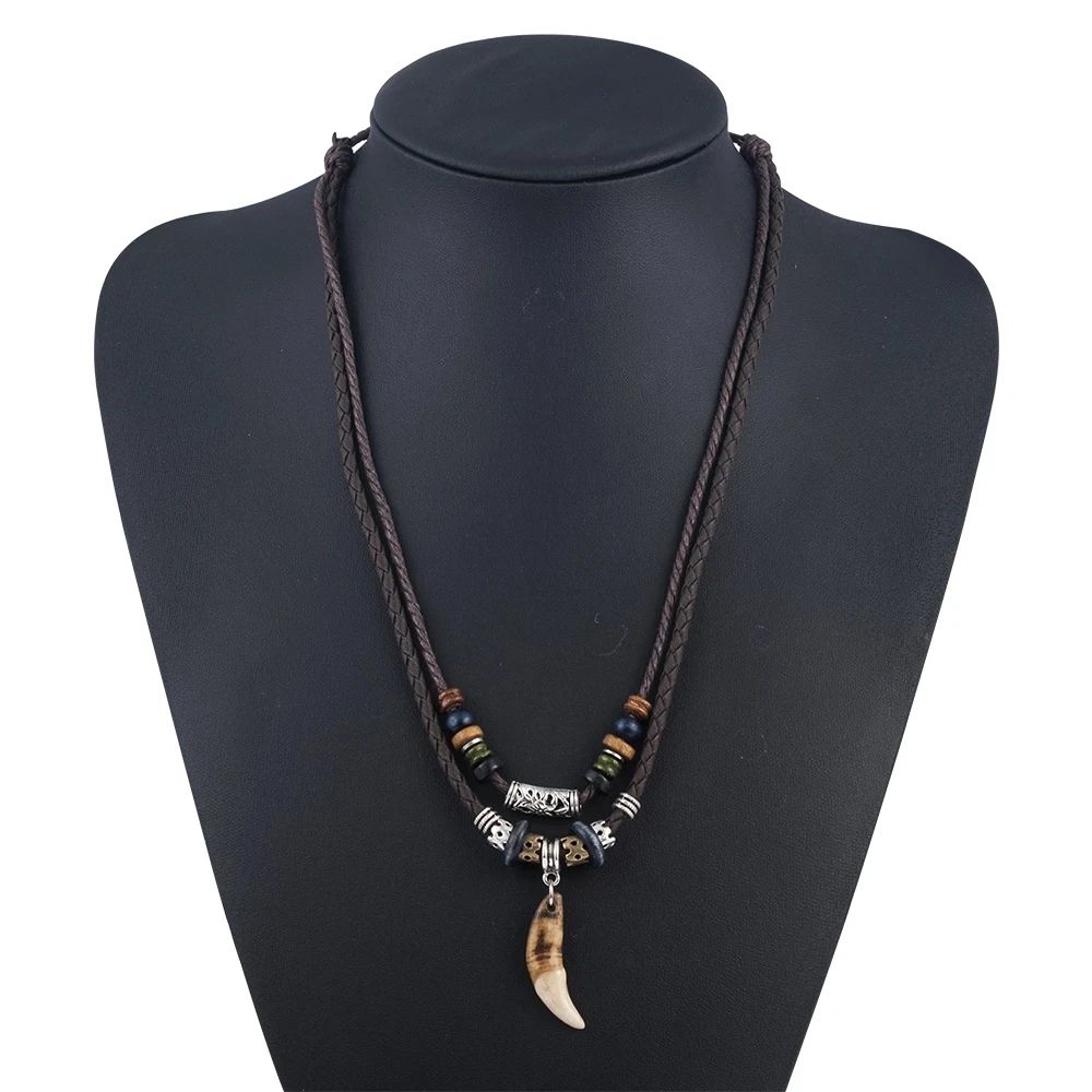 Чоловічий кулон Вовче ікло підвіска у формі зуба вовка на подвійному шнурку