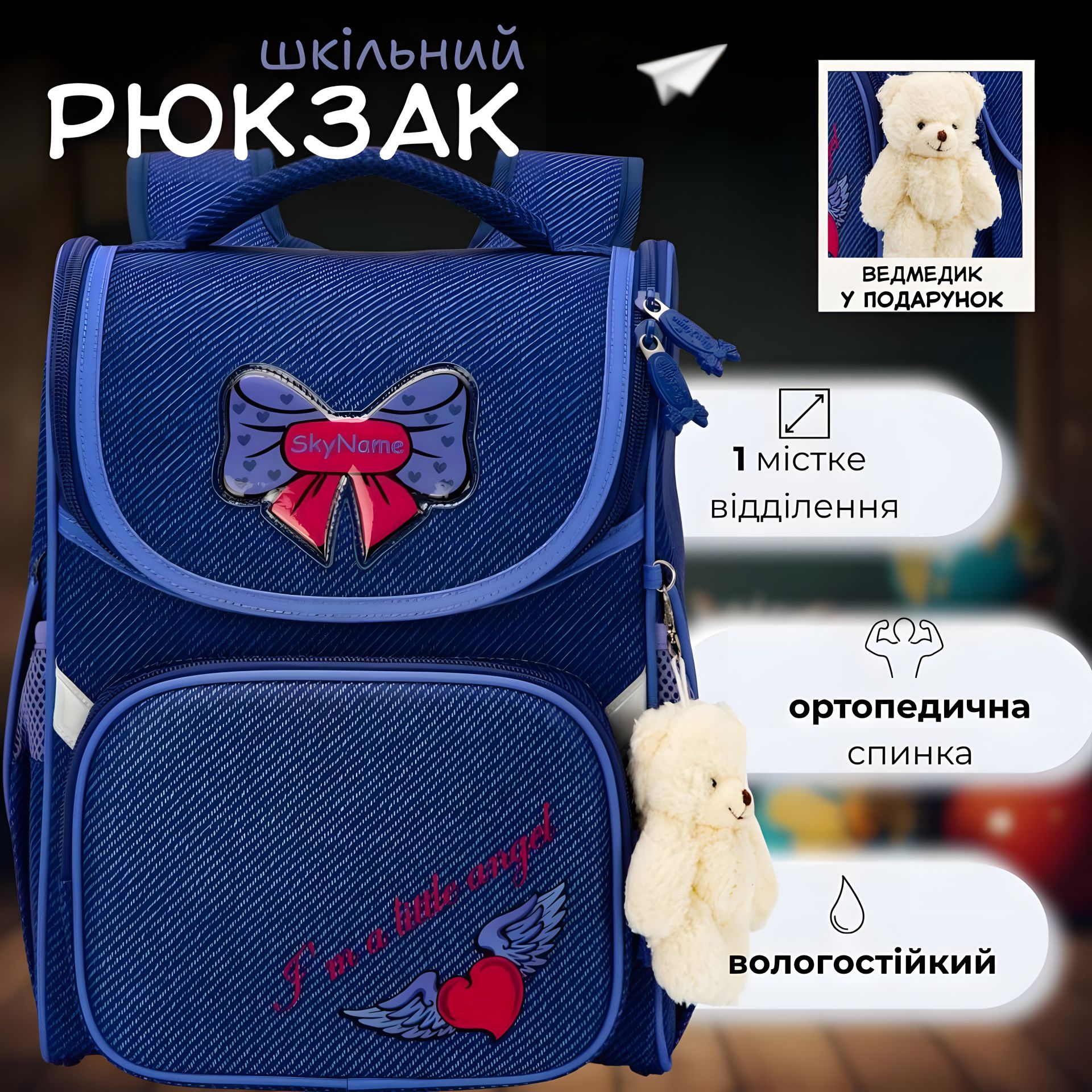Рюкзак шкільний Sky Name (Winner) для дівчаток 1-4 клас, водовідштовхувальна тканина, 14 л, синій