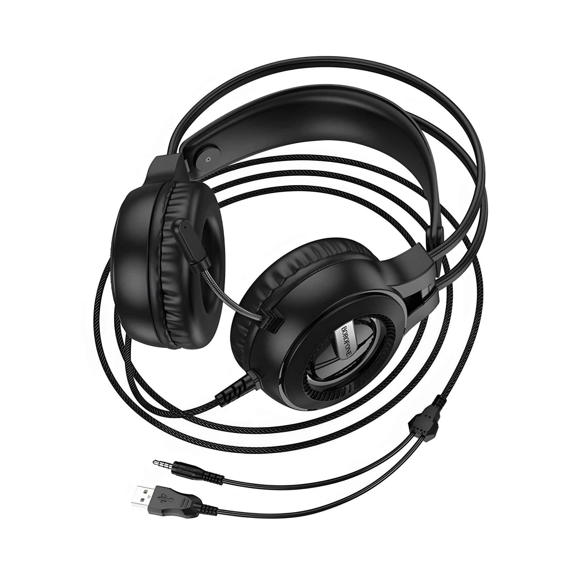 Ігрові навушники Borofone BO111 Eminen, USB, 3.5mm, 2m, Чорний