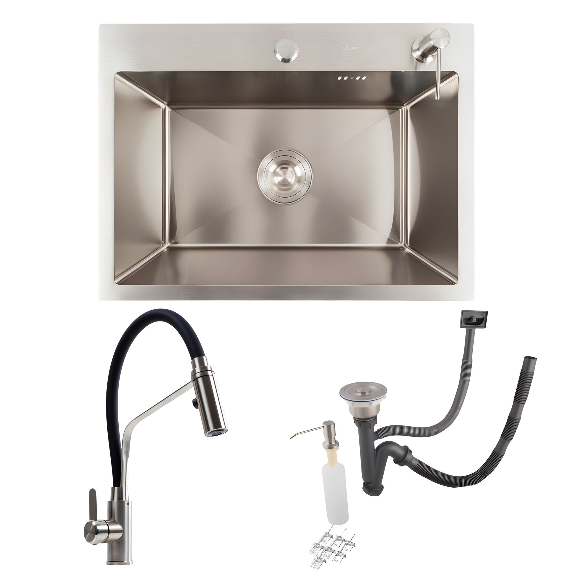 Kitchen Set: Sink Valeso Handmade (65x50 cm) Stainless Steel + Faucet FC-1 with Pull-out Head