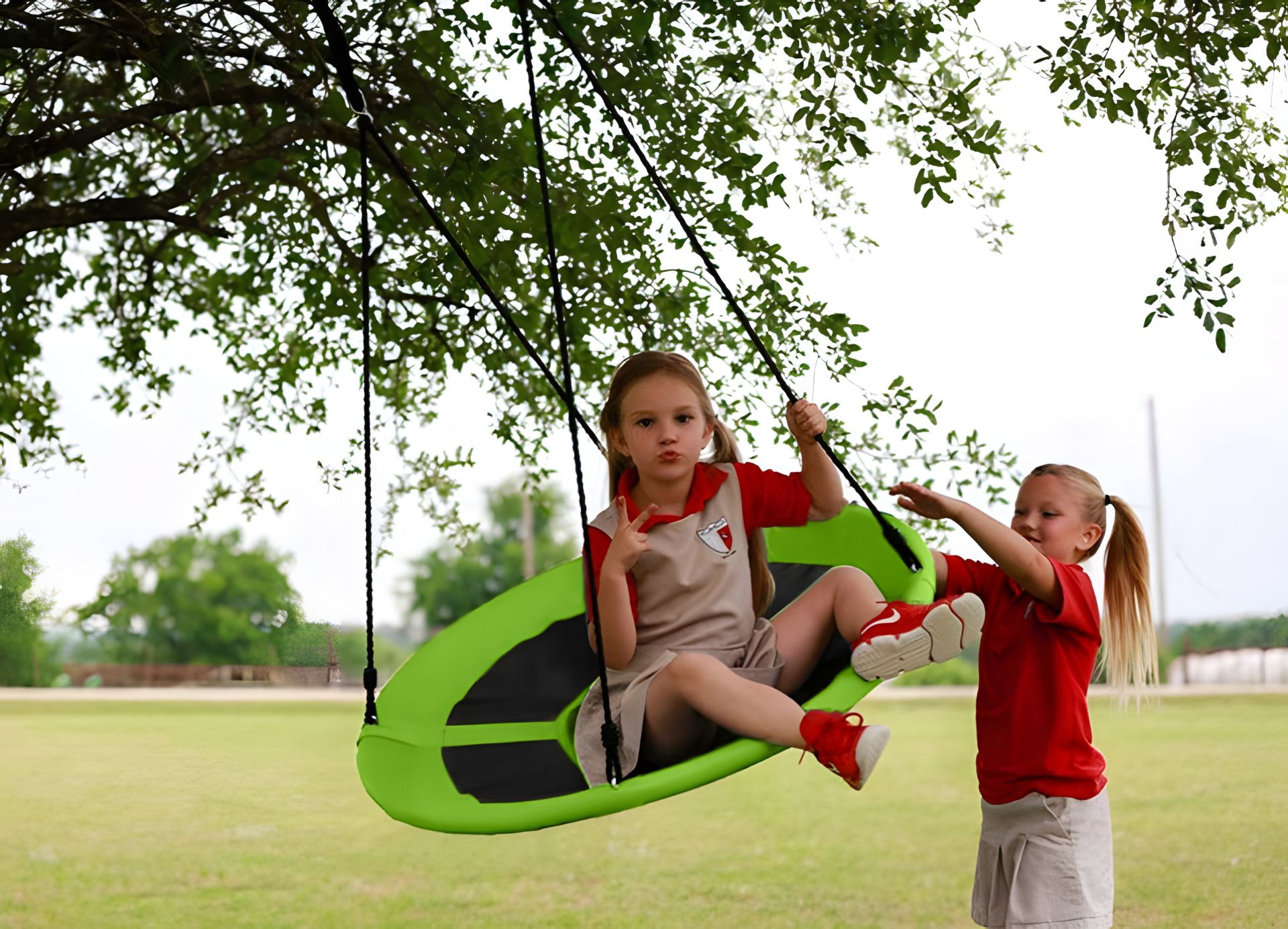 Гойдалки можна встановити класично на 2 гачка, це дозволить вам гойдатися вперед і назад, але якщо ви надягнете їх на 1 гачок, ви можете повернутися на ньому, що доставить дітям масу задоволення.