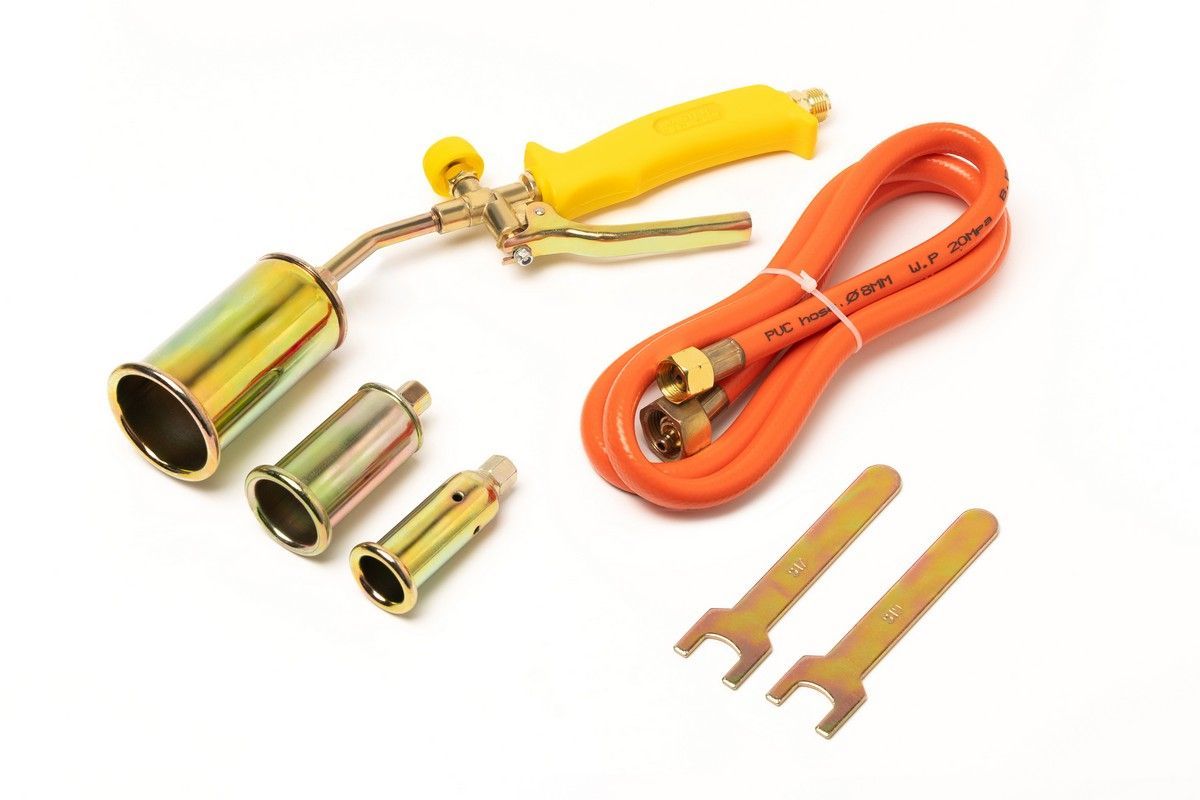 Ø 25 / 35 / 50 мм . Потужний полум'яний факел – ідеально для великої площі нагрівання • Висока продуктивність та надійність • Компактна довжина – зручність у роботі на обмежених просторах • Професійна якість виконання Призначення: • Нагрів та розм'якшення бітуму та руберойду • Розпалювання старих мангалів , печей • Удалення поверхонь на будмайданчику • Сушіння бетону, цегли, фасадів Цей пальник - ідеальний вибір для будівельників, покрівельників, автомайстрів та майстрів з обслуговування комунікацій. Потужність та гнучкість в одному інструменті! • 3 змінні насадки Ø25/35/50 мм — для різних типів робіт ; • ідеальний для будівельних, ремонтних та монтажних робіт