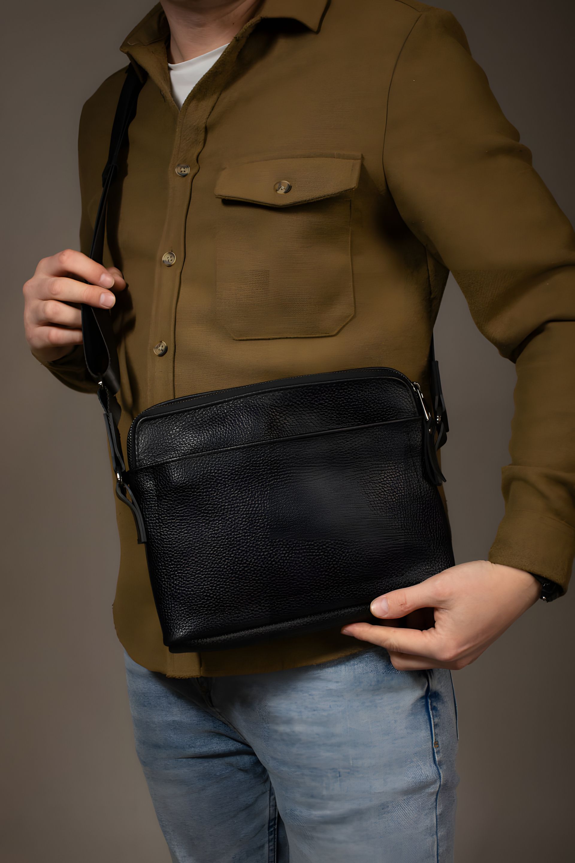 Сумка-мессенджер із натуральної зернистої шкіри, чоловіча сумка через плече