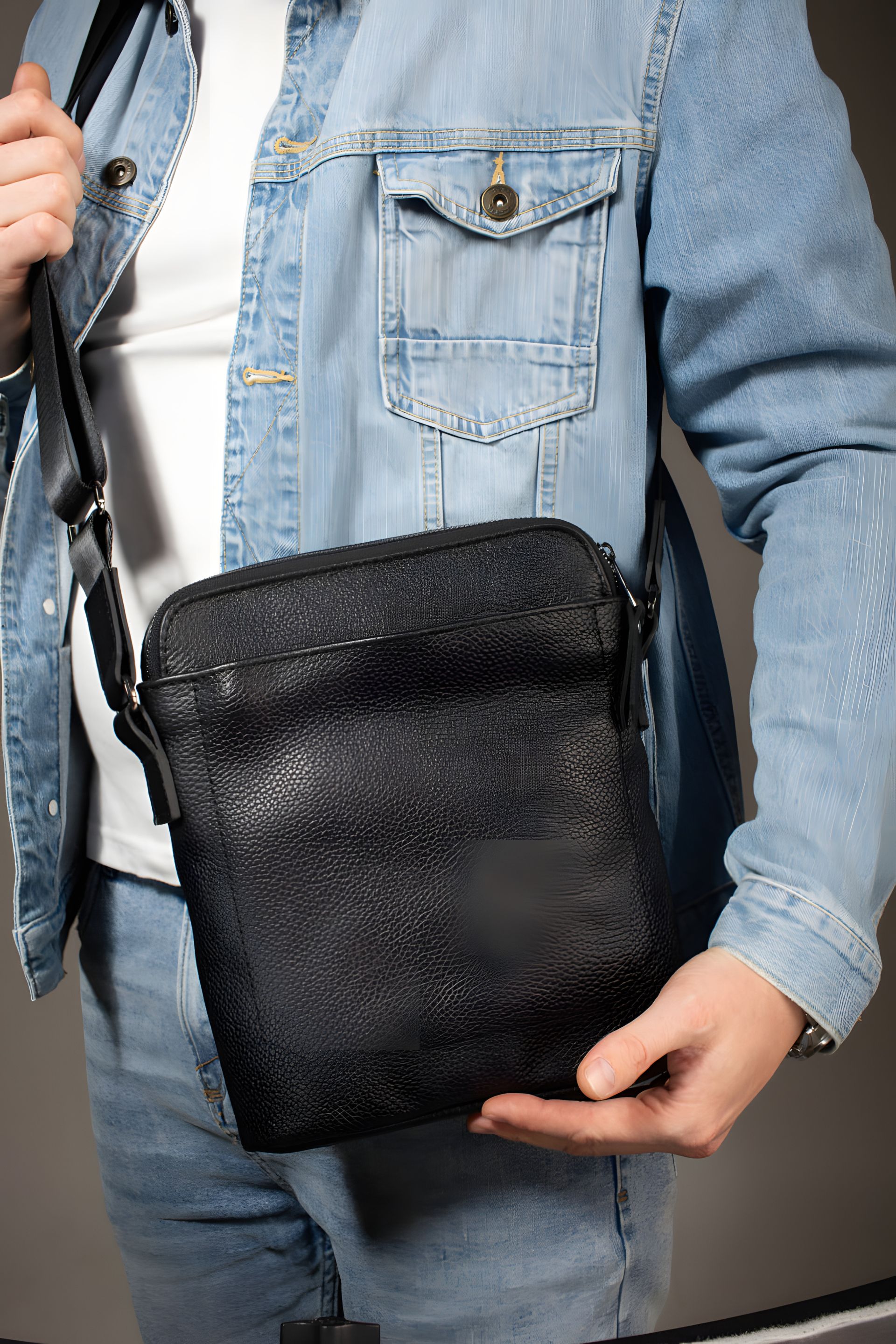 Сумка-мессенджер із натуральної зернистої шкіри, чоловіча сумка через плече
